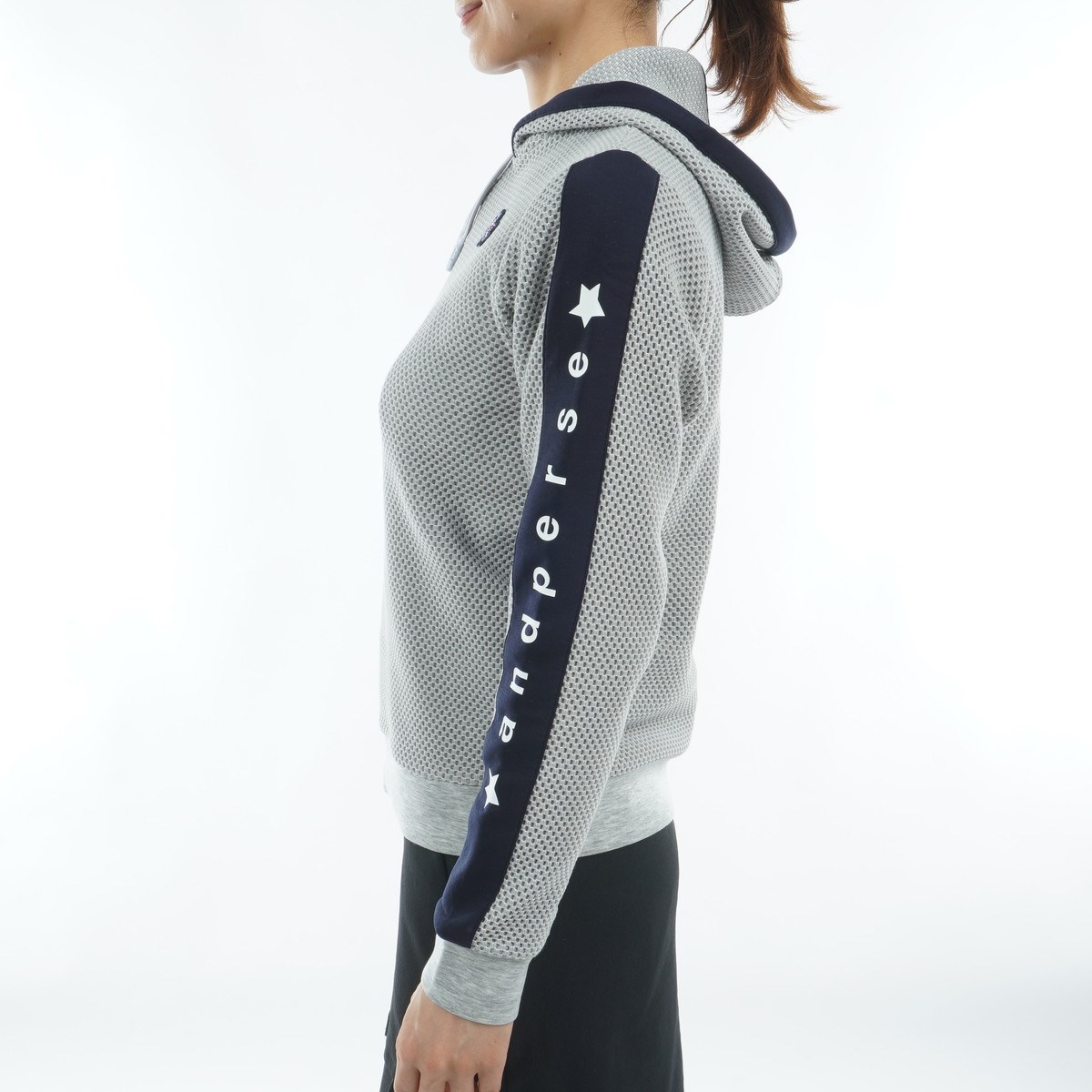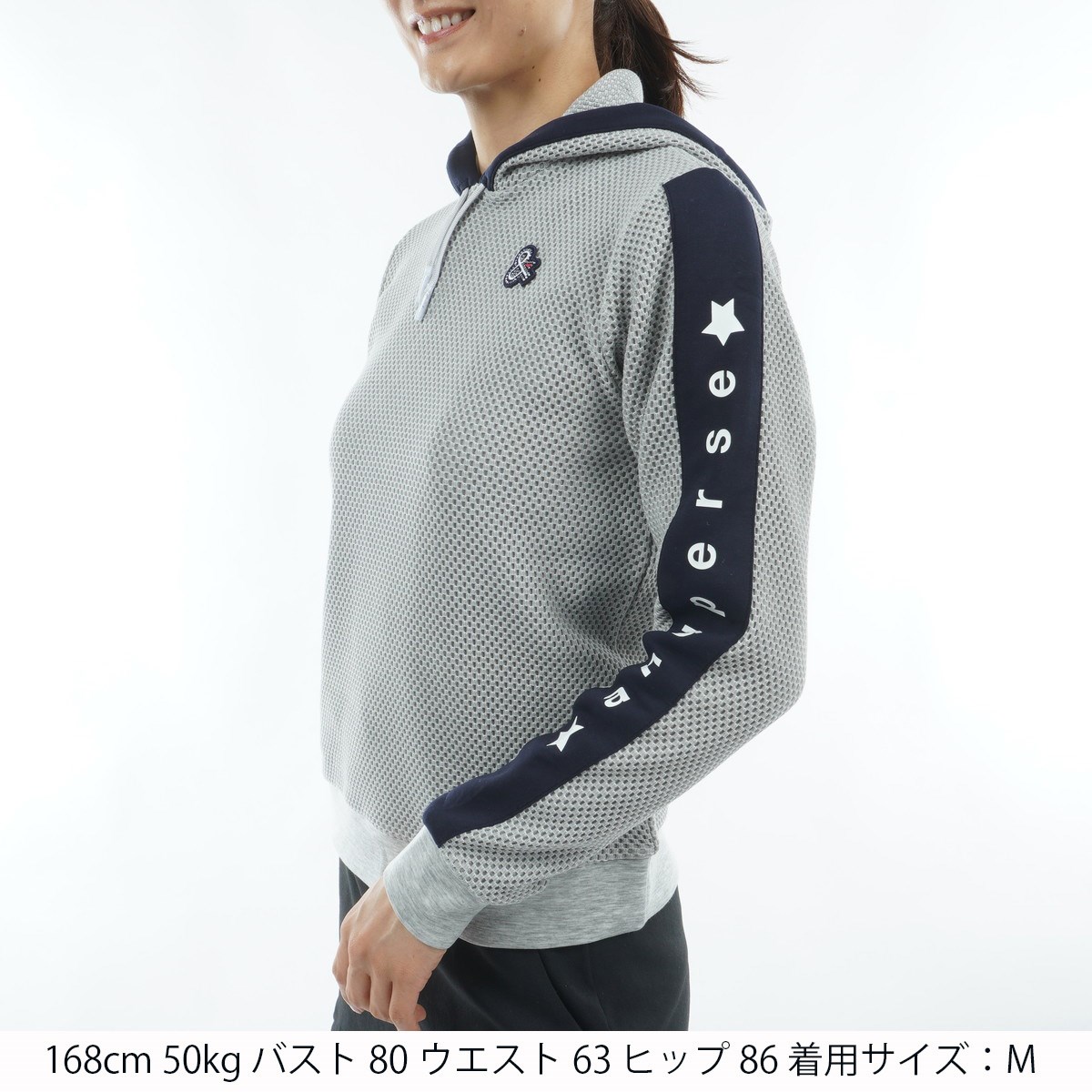 アンパスィ and per se ストレッチ エアレーテックメッシュ フーディープルオーバー L グレー レディス
