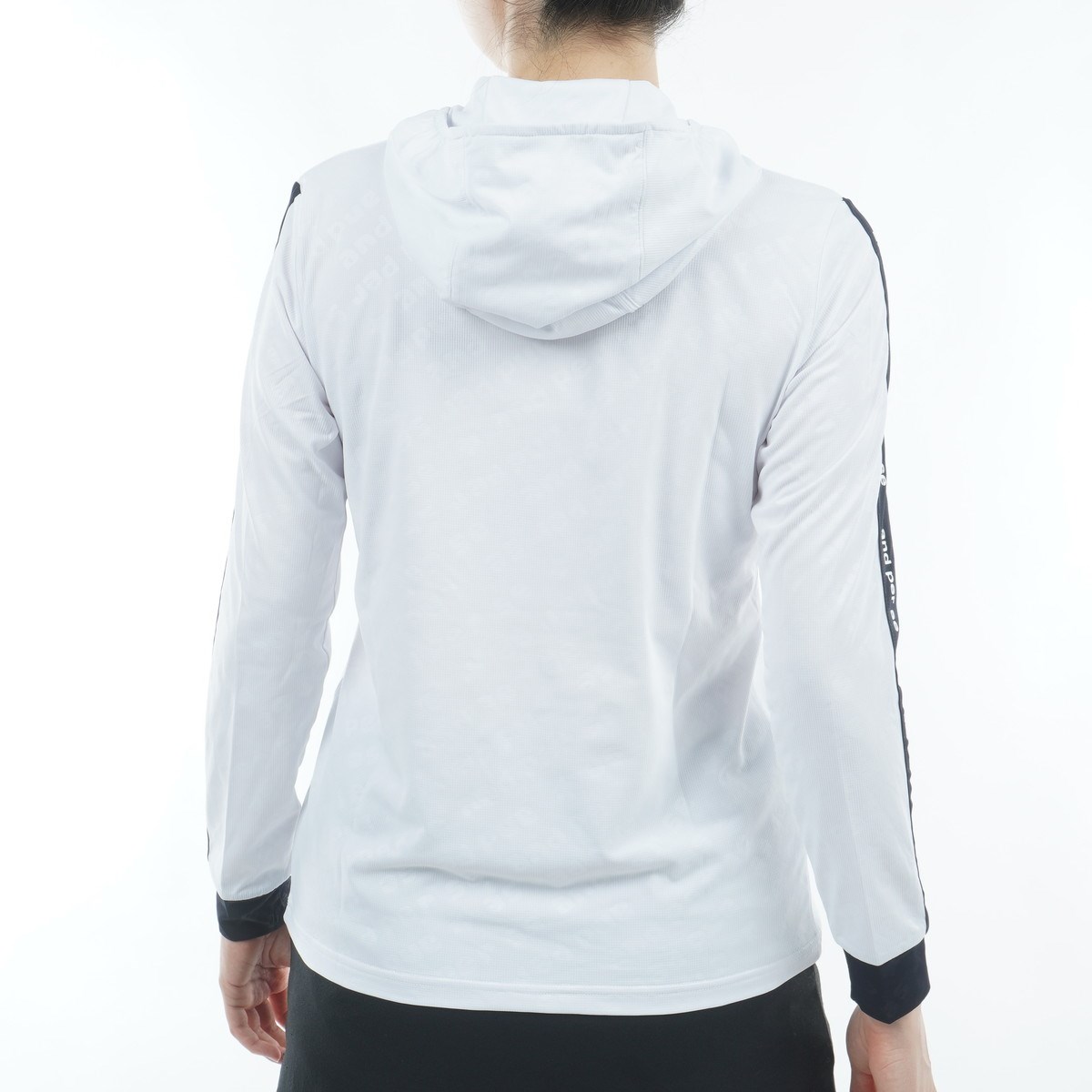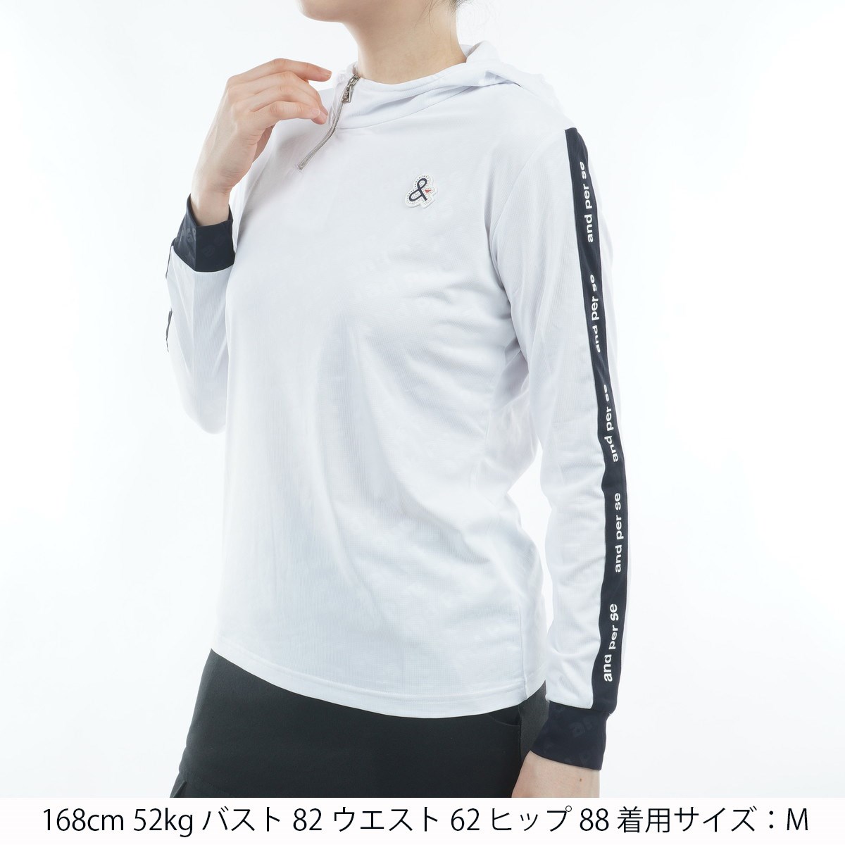 アンパスィ and per se ストレッチ スイングドライエンボス長袖フーディーシャツ M ホワイト レディス