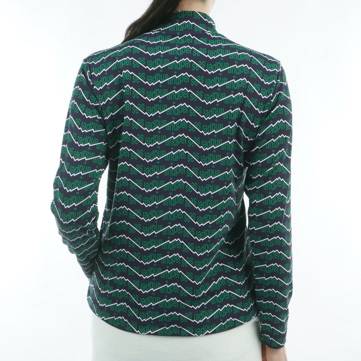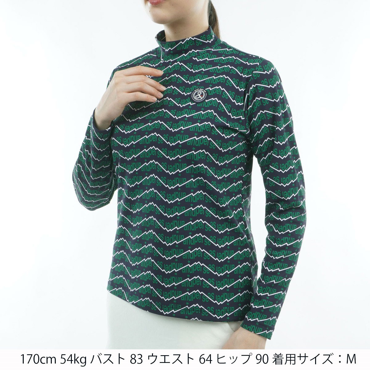 アンパスィ and per se ストレッチ ショットスムーザープリント長袖モックネックシャツ M ネイビー レディス