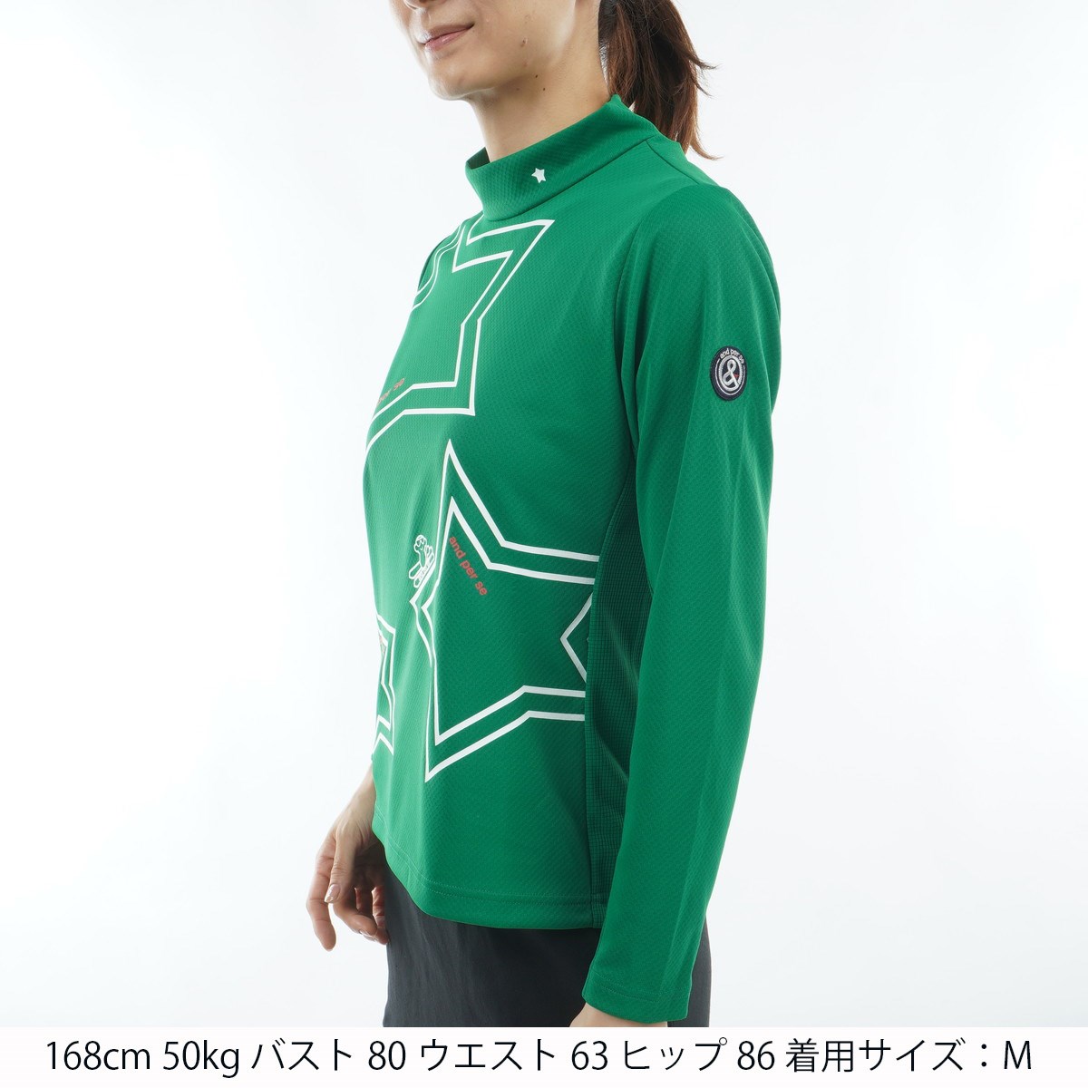アンパスィ and per se ストレッチディンプル長袖モックネックシャツ LL グリーン レディス