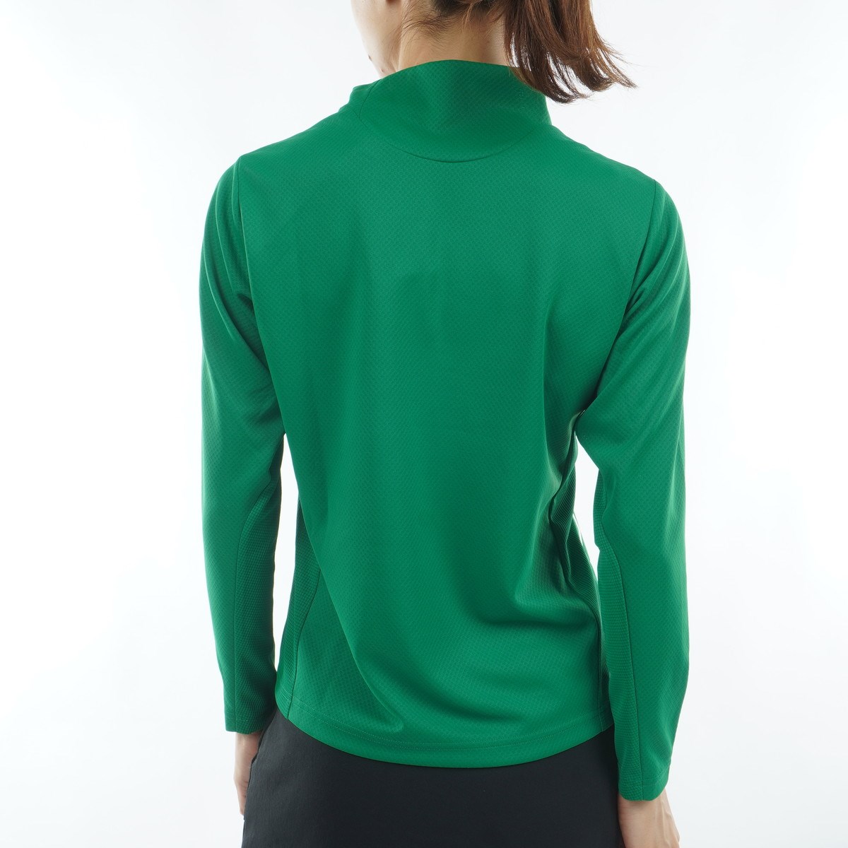 遮熱機能を持つストレッチディンプル素材の長袖モックネックシャツ。