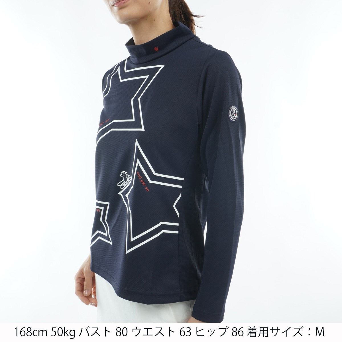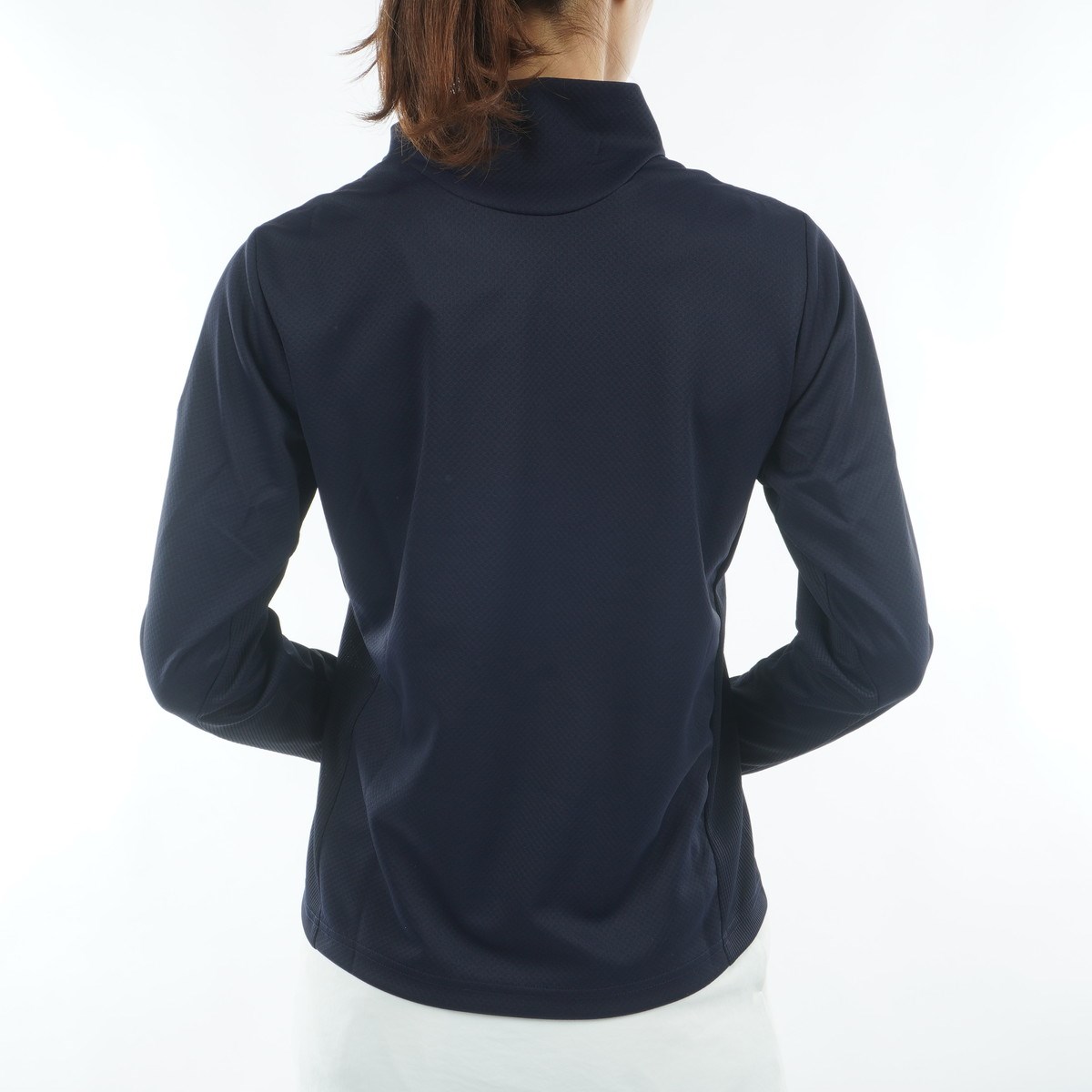 アンパスィ and per se ストレッチディンプル長袖モックネックシャツ L ネイビー レディス