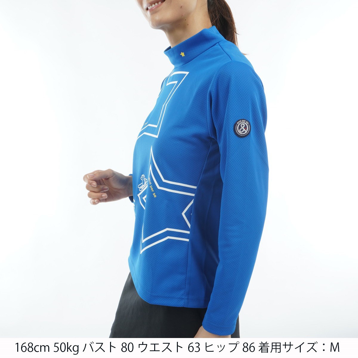 アンパスィ and per se ストレッチディンプル長袖モックネックシャツ LL ブルー レディスのレビュー