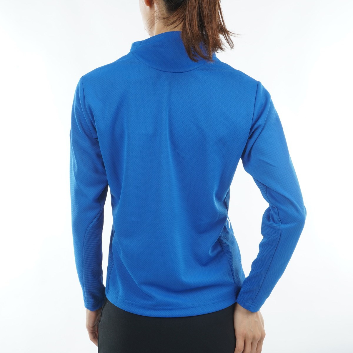 遮熱機能を持つストレッチディンプル素材の長袖モックネックシャツ。