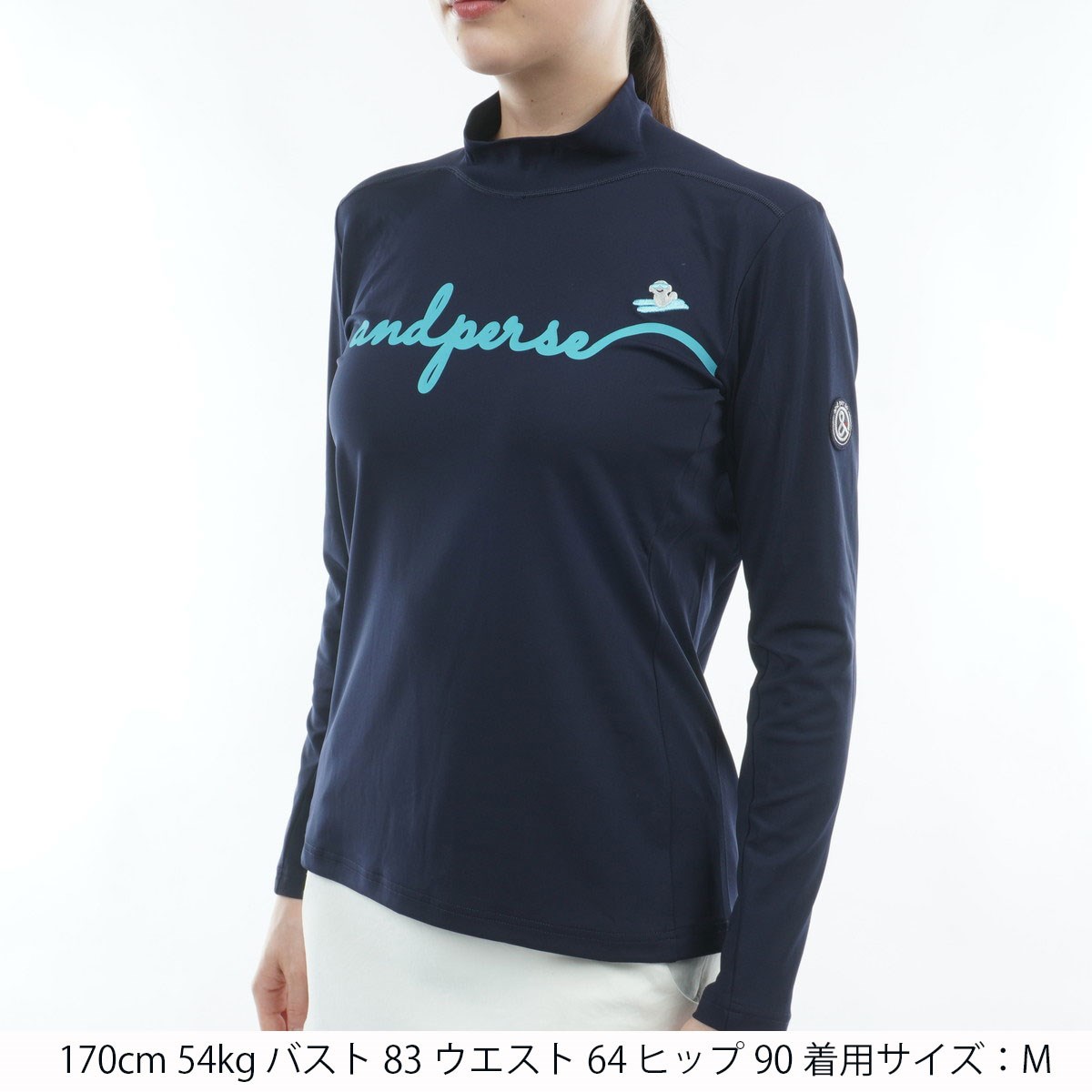 アンパスィ and per se ストレッチ マシュマロジャージー長袖モックネックシャツ L ネイビー レディス