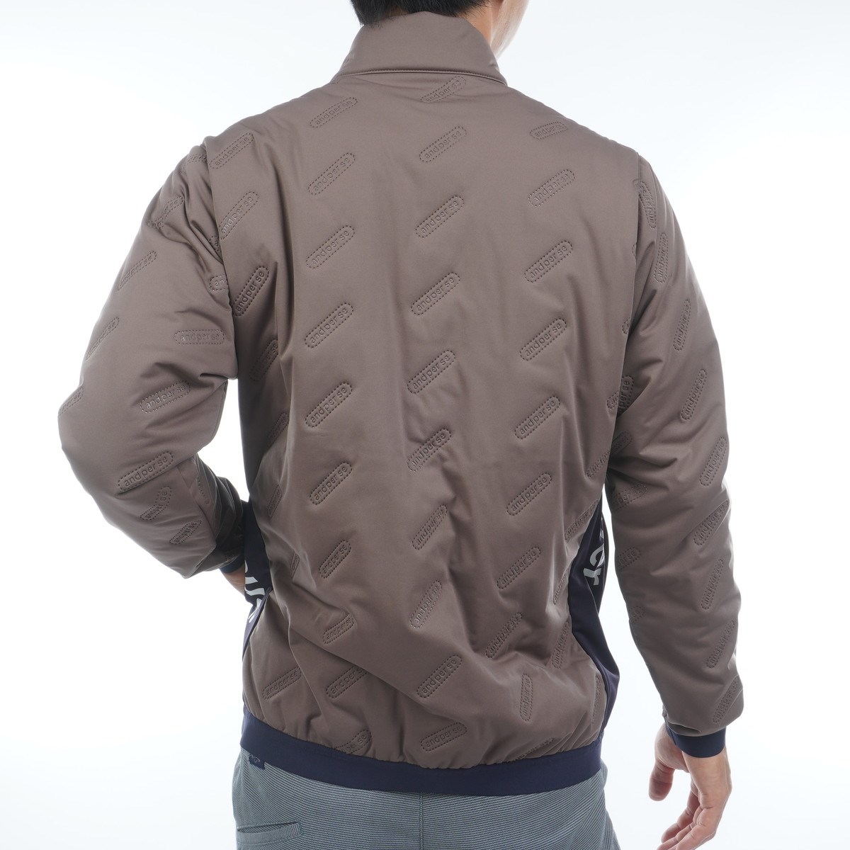 キルト(縫製)ではなく、圧着始末で表地&板形状中綿を留めることによって全体のストレッチ性を確保する上、中綿繊維の表側への吹き出しも起きにくくさせるというオムニテクニカル・ファンクションです。