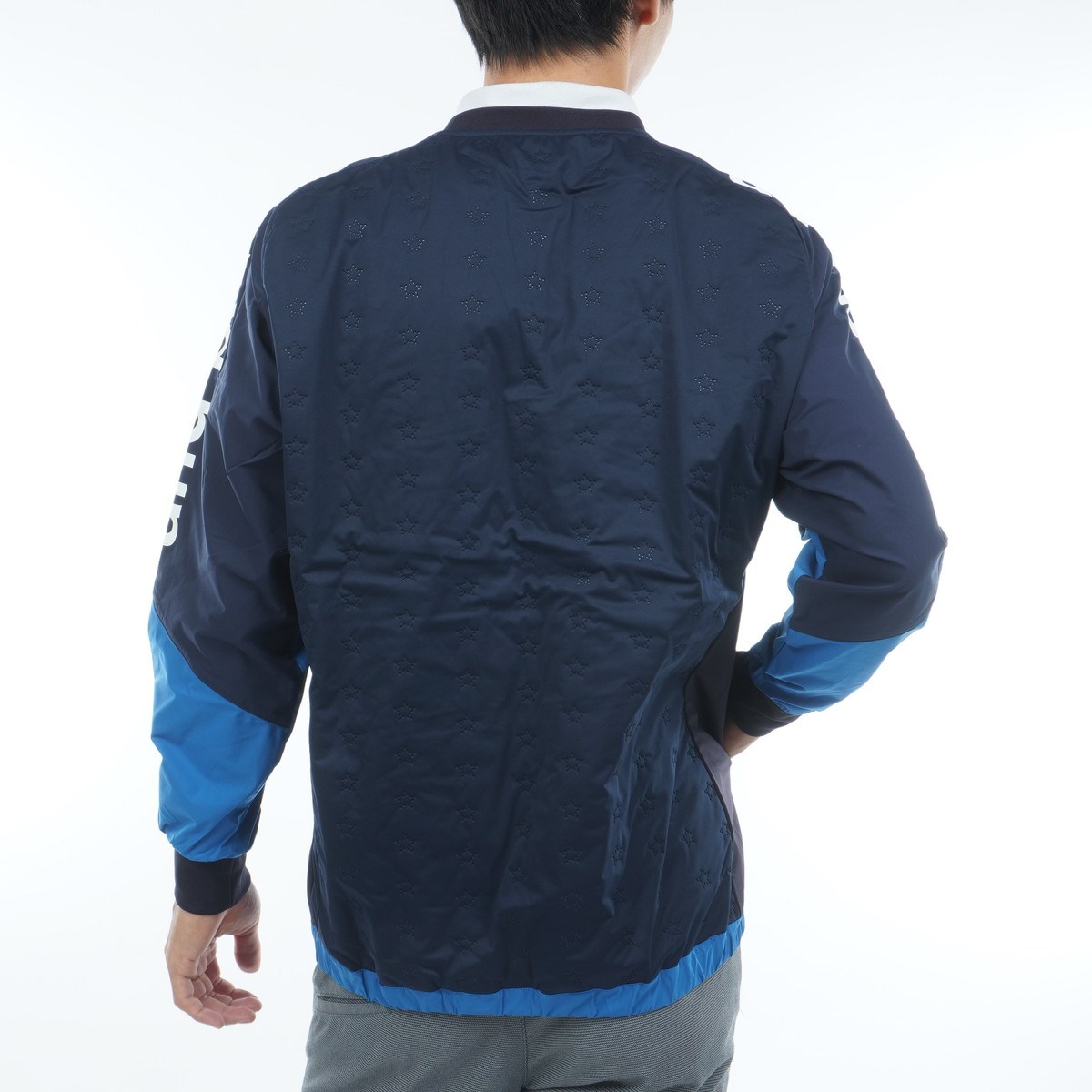 ゴルフプレー時での動きやすさ&脱着のしやすさを考慮したリブ使い衿仕様がポイントです。