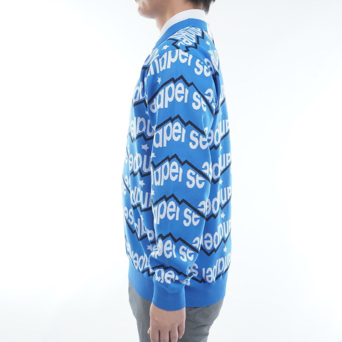 アンパスィ and per se ストレッチ アクティブニットジャカード セーター M ブルー