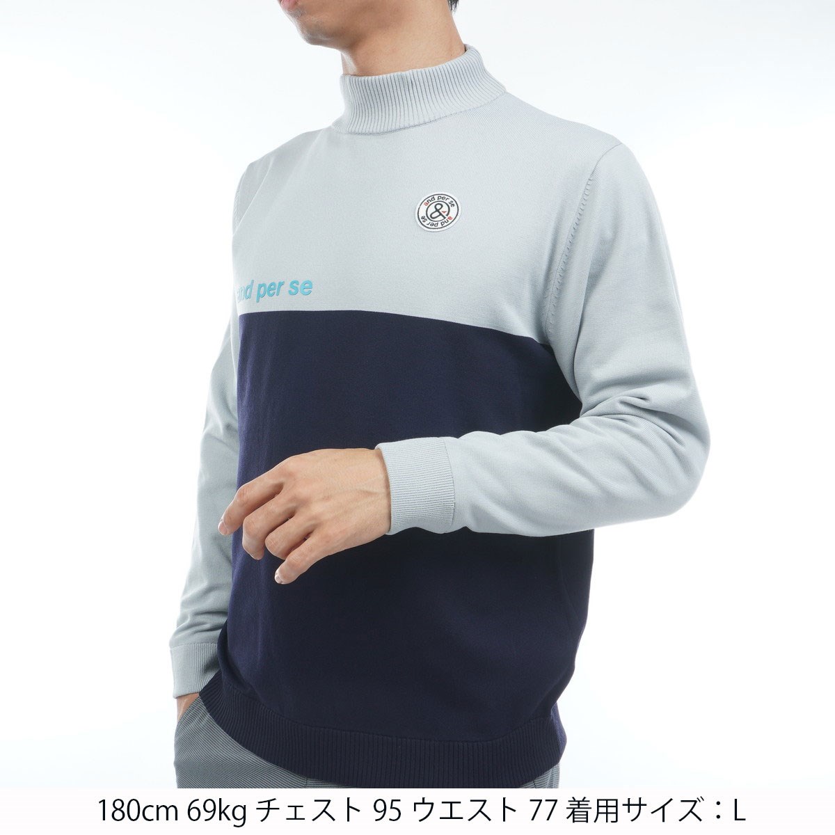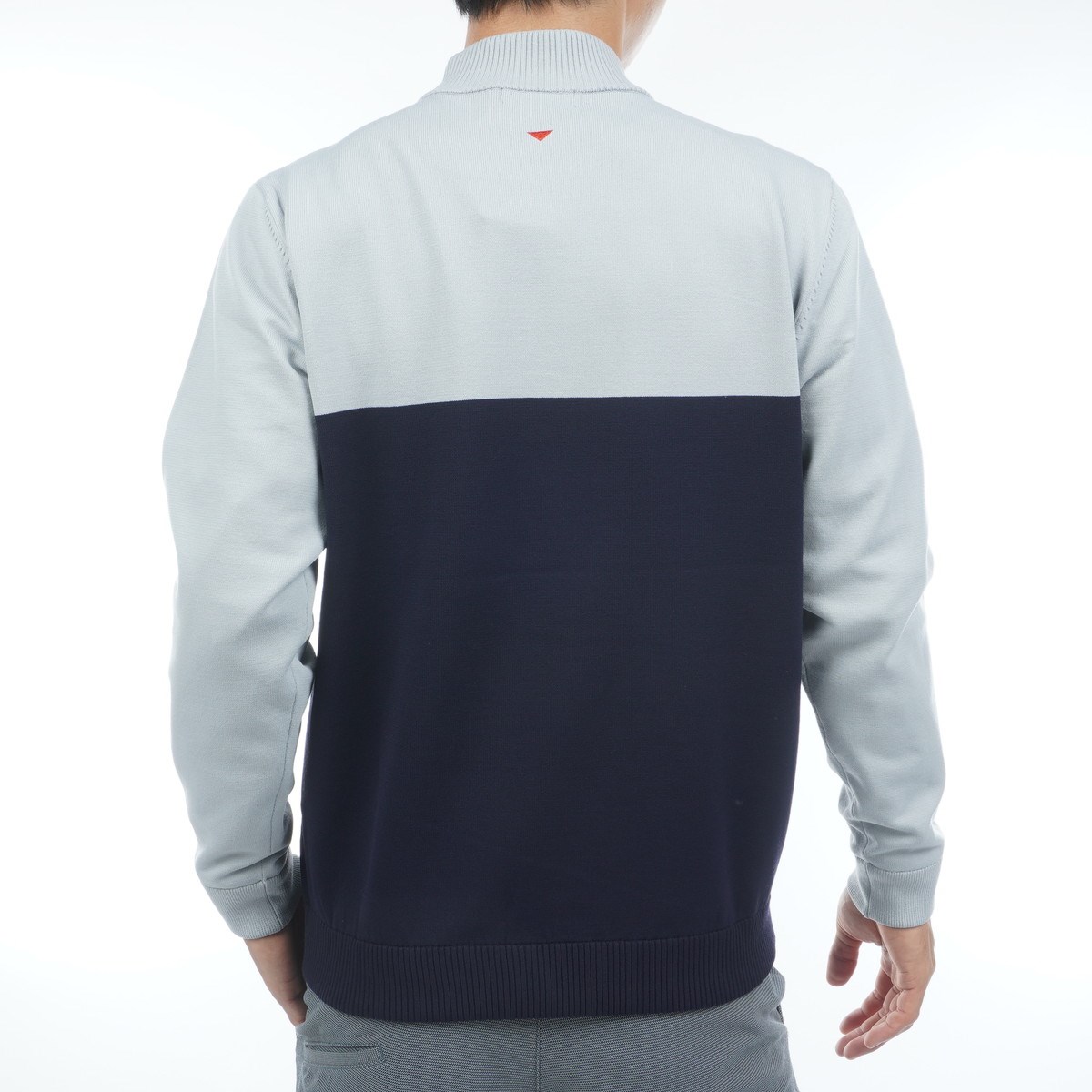 カラーブロッキングデザインがターフで映えるハイネックセーター。