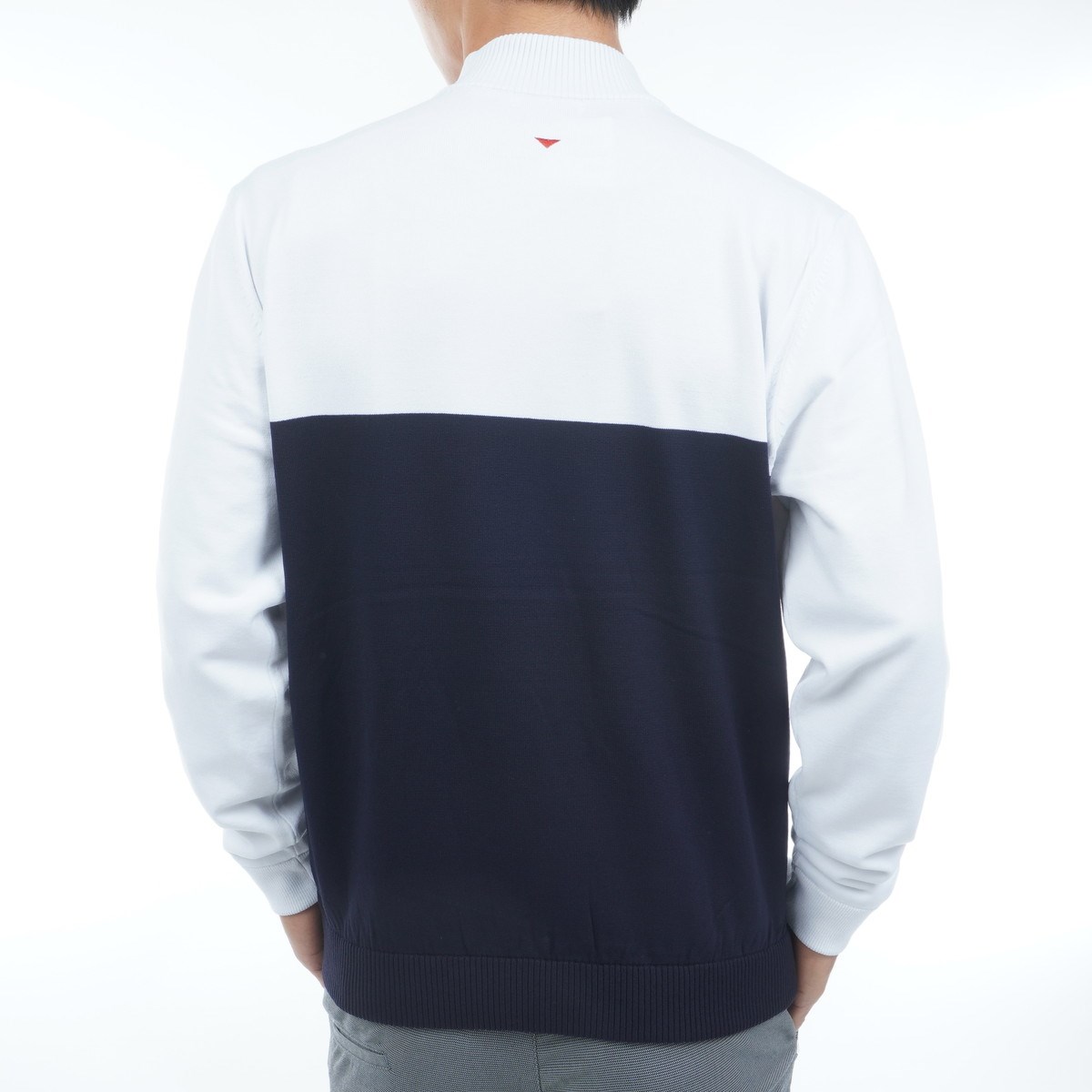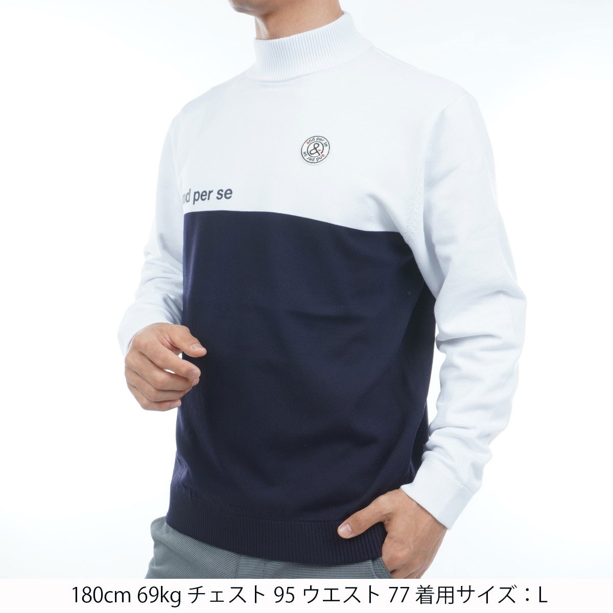 カラーブロッキングデザインがターフで映えるハイネックセーター。