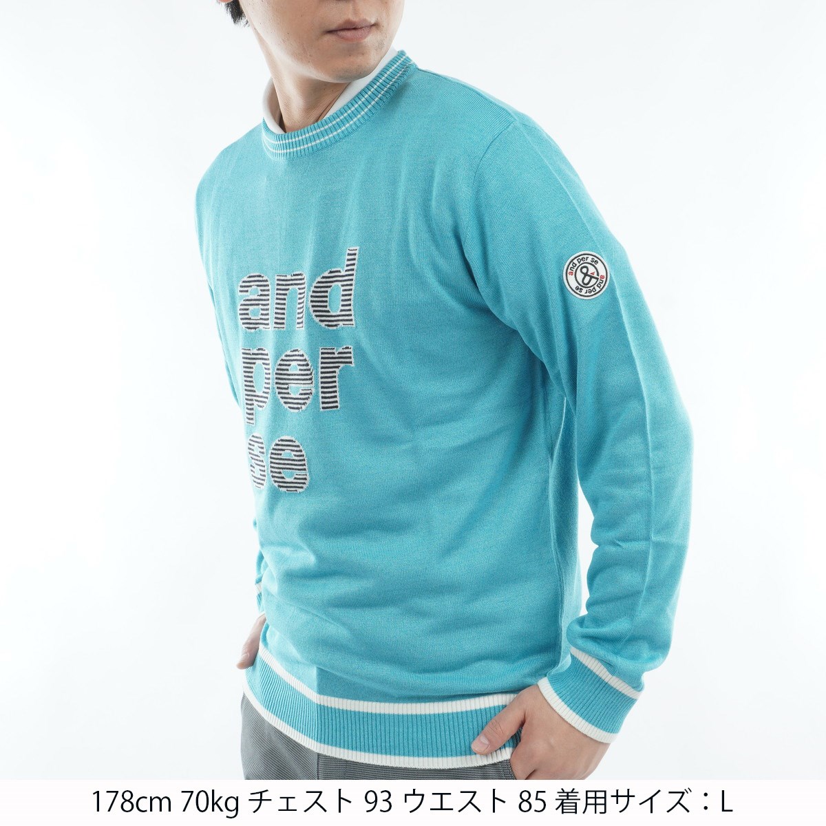 アンパスィ and per se クレアニットクルーネックセーター L スカイ