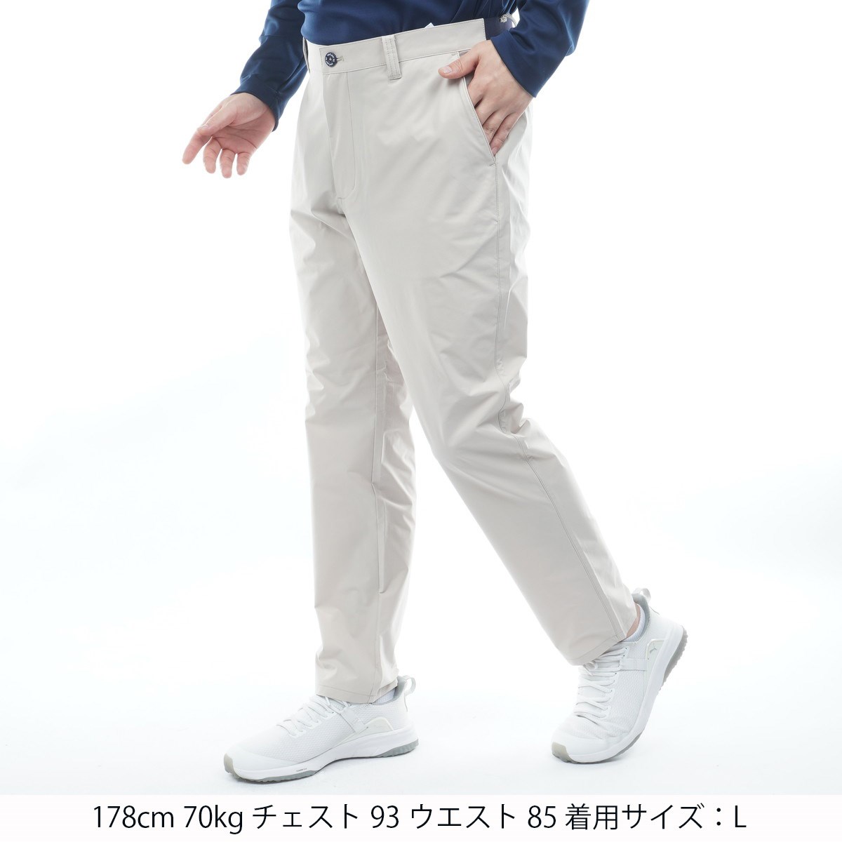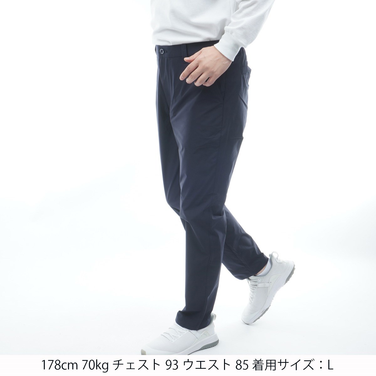 | 素材 | 身生地:ポリエステル100%(マルチウェザータイプライター)/後ろウエスト:ナイロン66%、ポリウレタン34% |