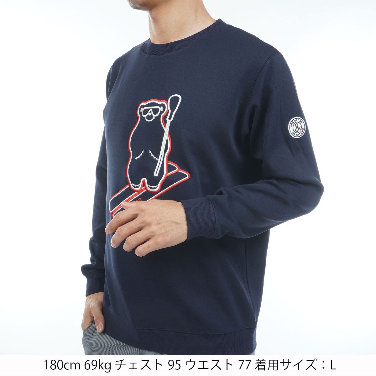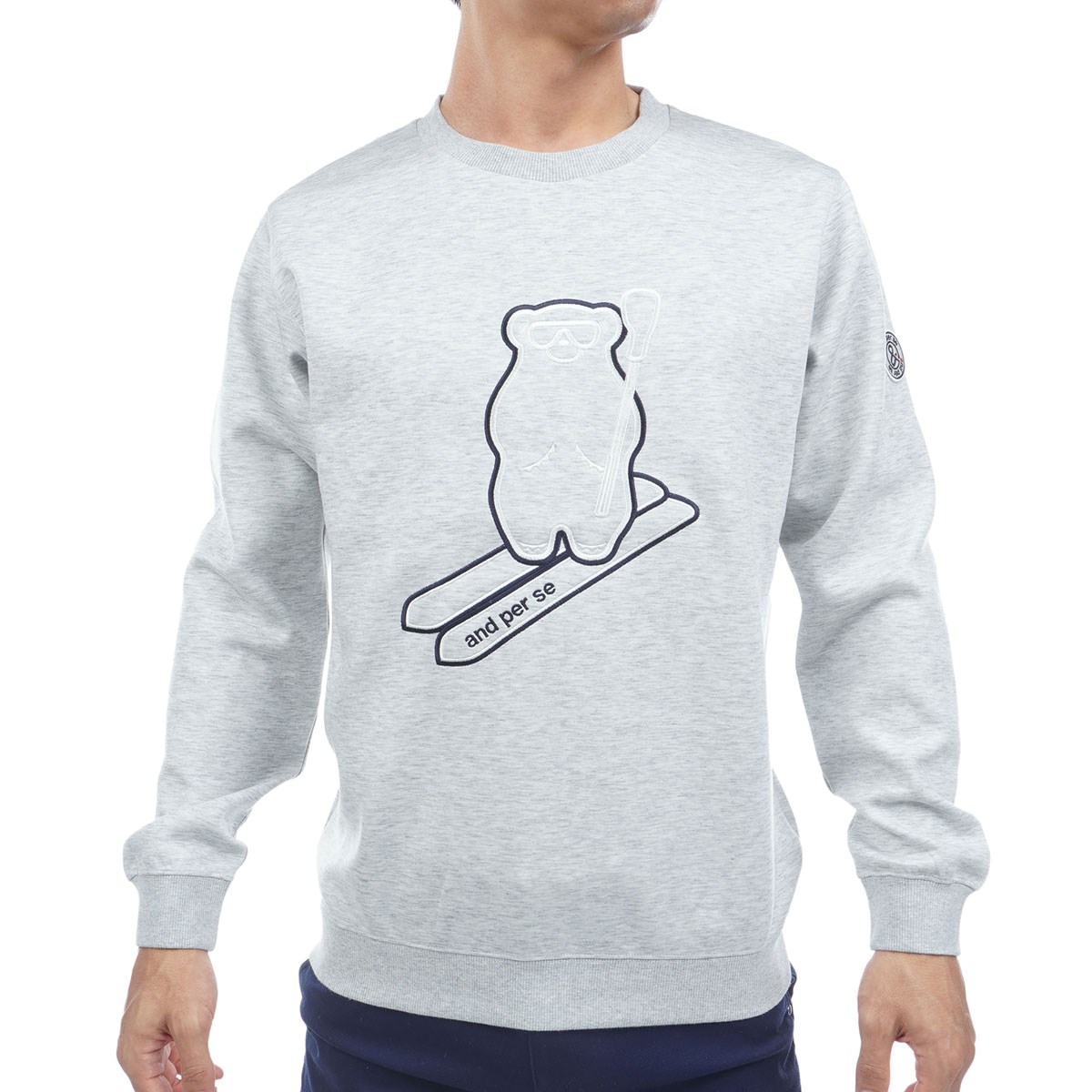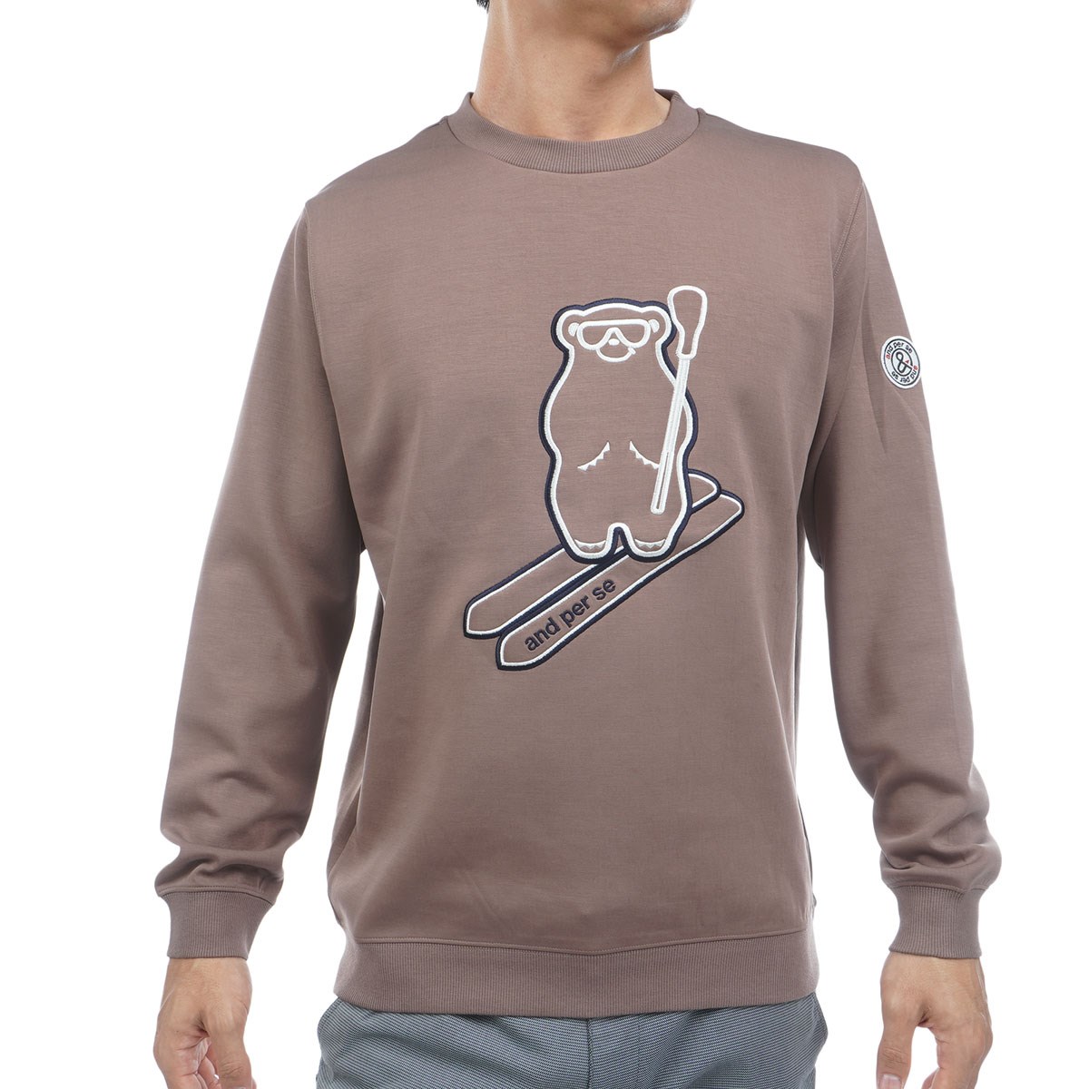 フロント部分にand per se 2025秋冬シーズンテーマとなる「ベアー」モチーフの刺繍を配したデザインが印象的。