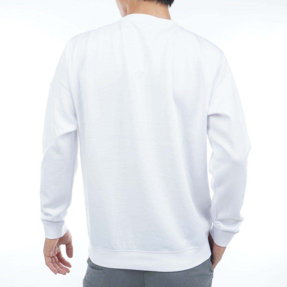 伸縮性の高さによる動きやすさと、シャツ衿ともモックネックとも合わせやすいクルーネック形状で仕上げています。