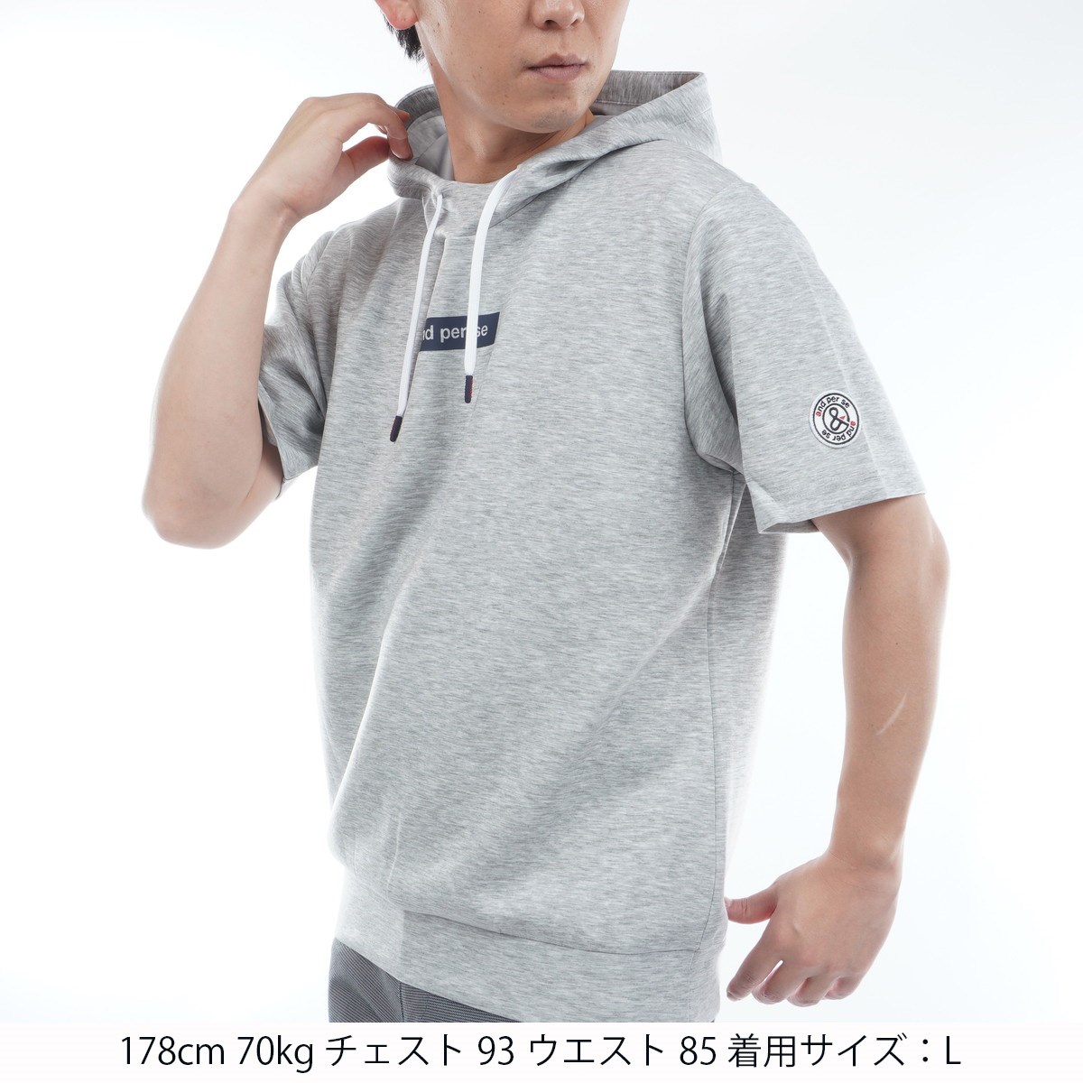 アンパスィ and per se ストレッチ ショットスムーザースウェット半袖フーディーシャツ LL グレー