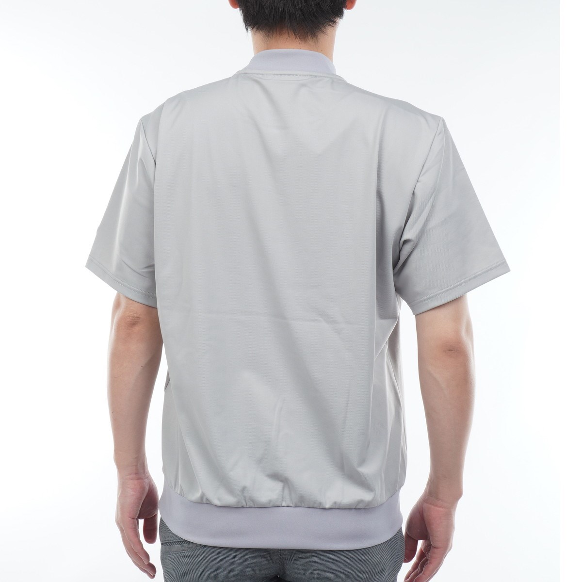 スイングのしやすさを計算したラグランスリーブ、きれいな衿形状&着脱のしやすさをケアしたリブ使い三角ガゼットデザインが特長です。