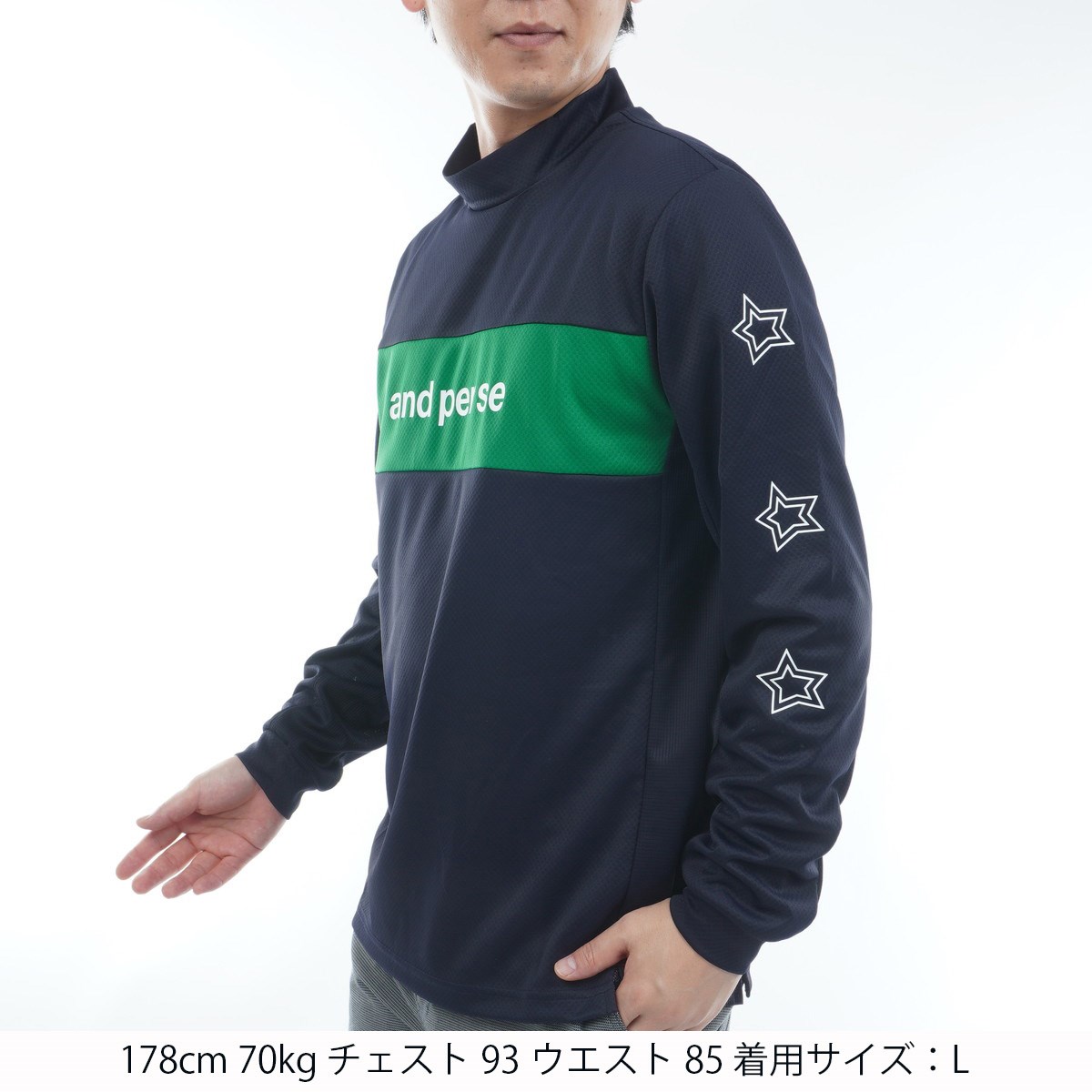 アンパスィ and per se ストレッチ ディンプル長袖モックネックシャツ L ネイビー