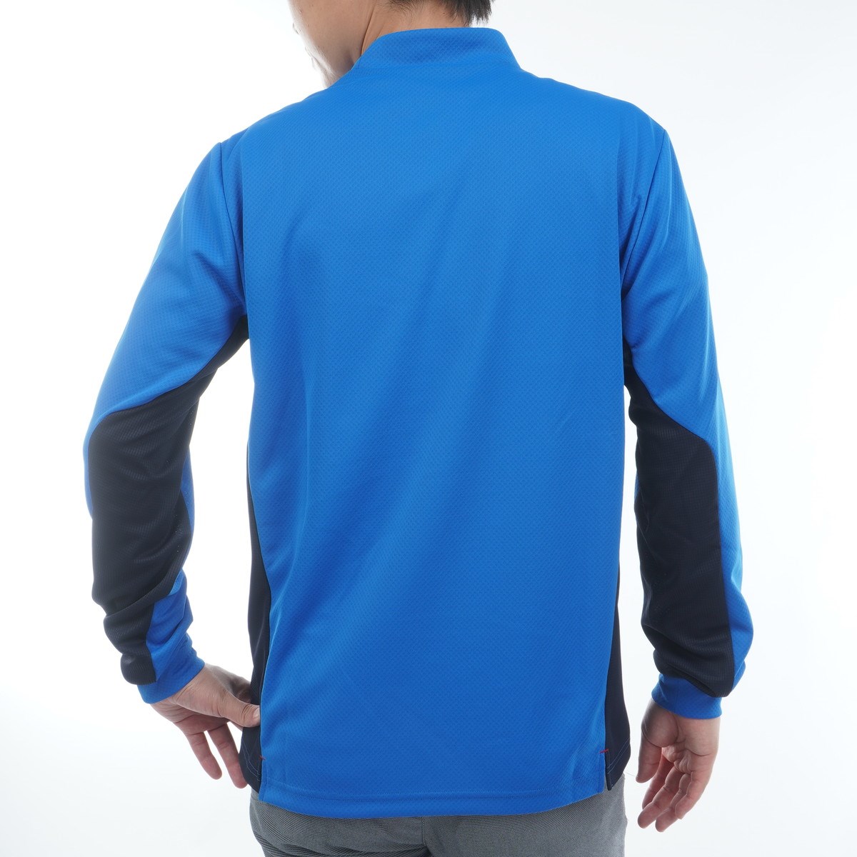 遮熱機能を持つストレッチディンプル素材の長袖モックネックシャツです。