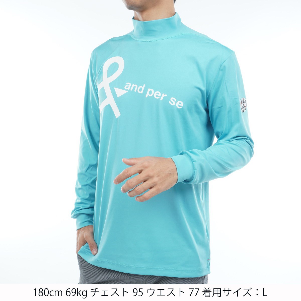 アンパスィ and per se ストレッチ マシュマロジャージー長袖モックネックシャツ M スカイ