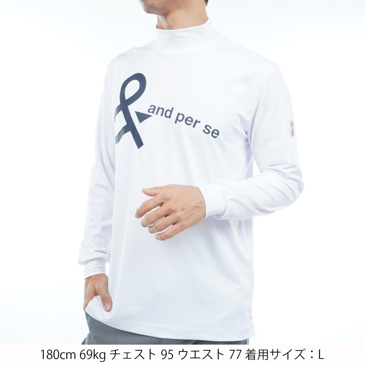 アンパスィ and per se ストレッチ マシュマロジャージー長袖モックネックシャツ 3L ホワイト