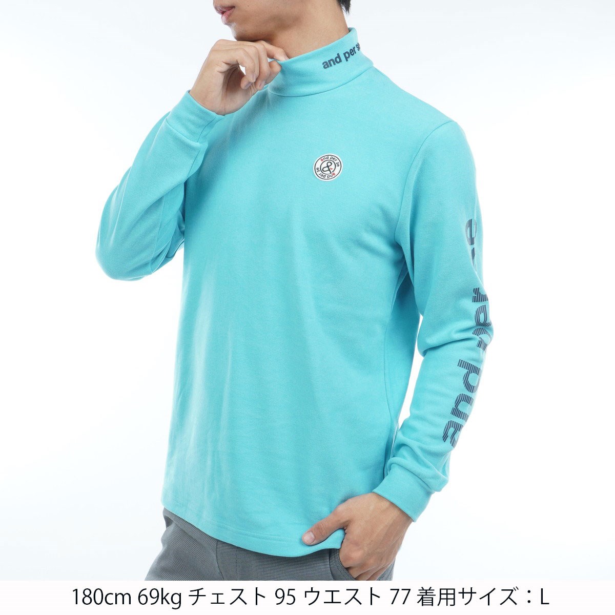 アンパスィ and per se ストレッチ マシュマロスムース ハイネック長袖シャツ L スカイ