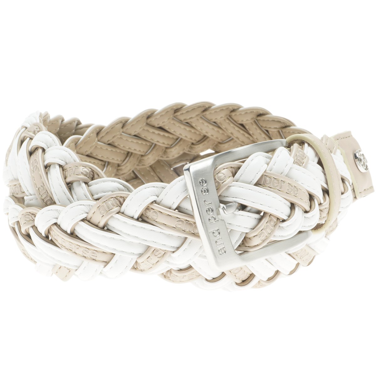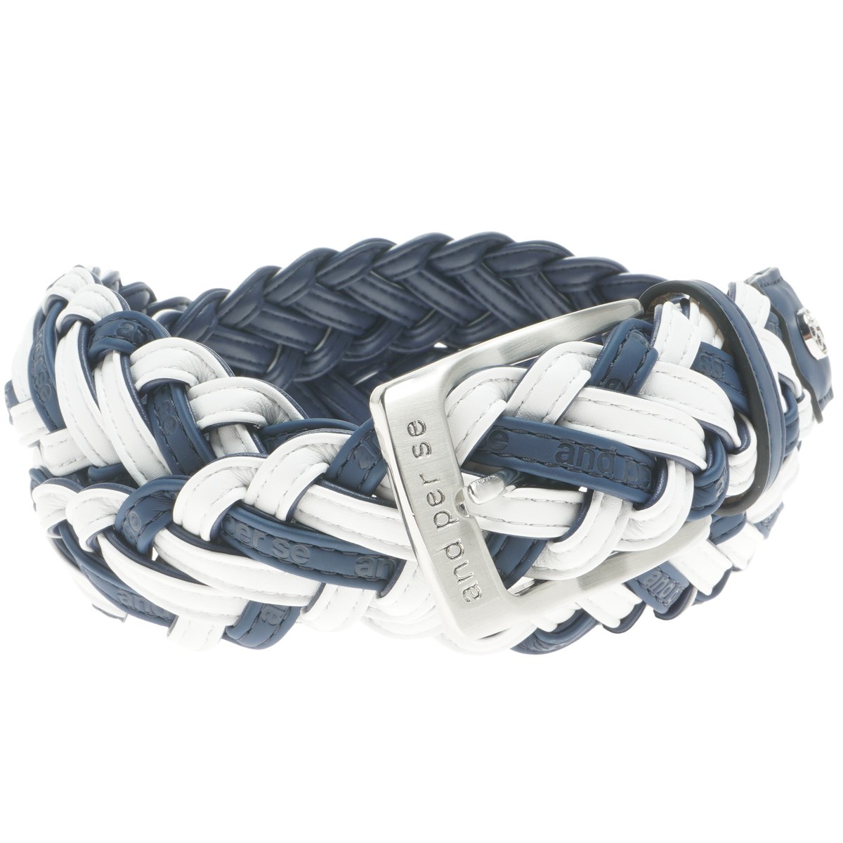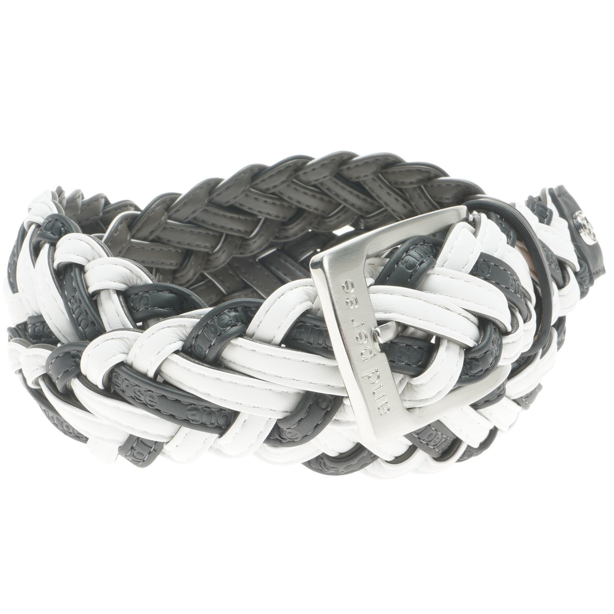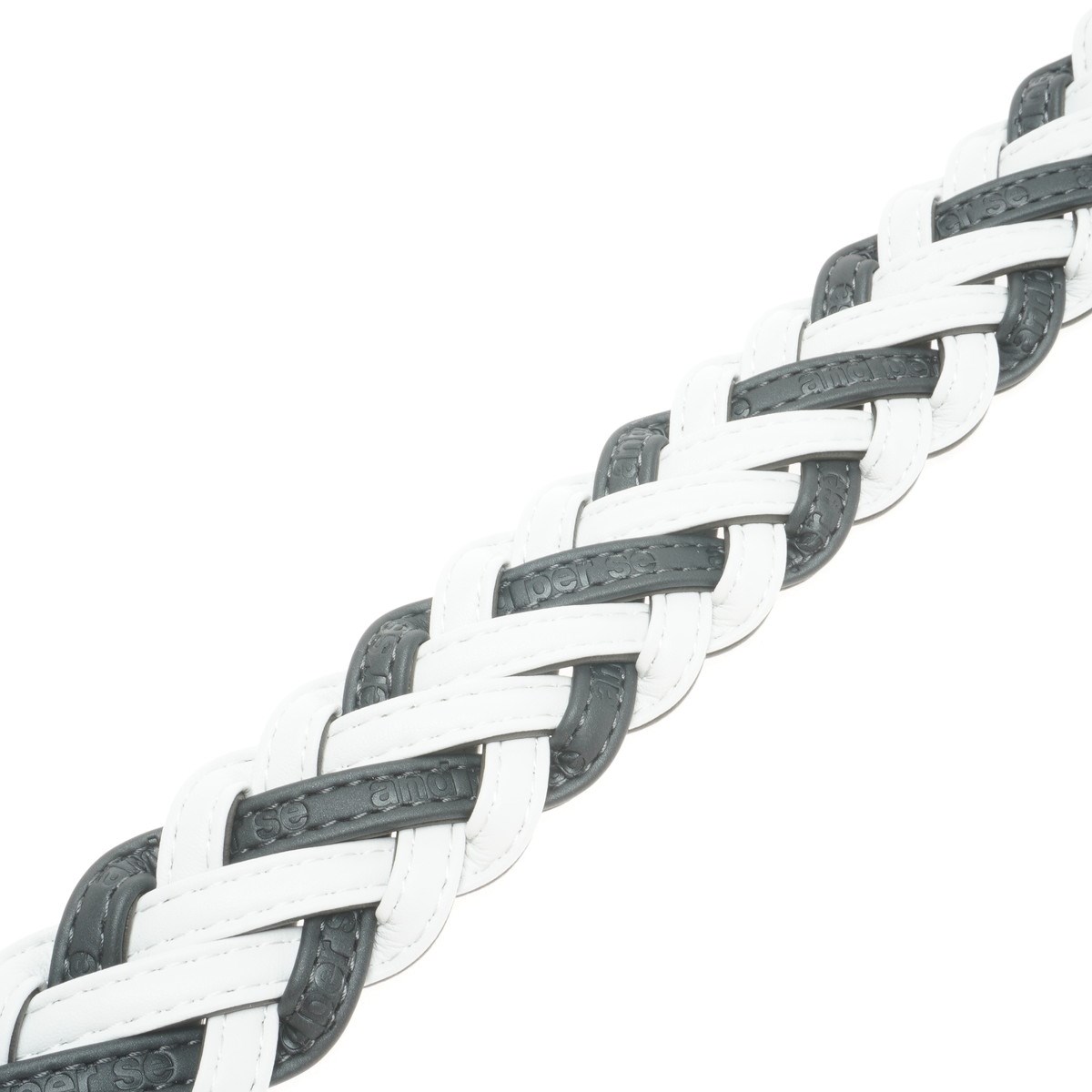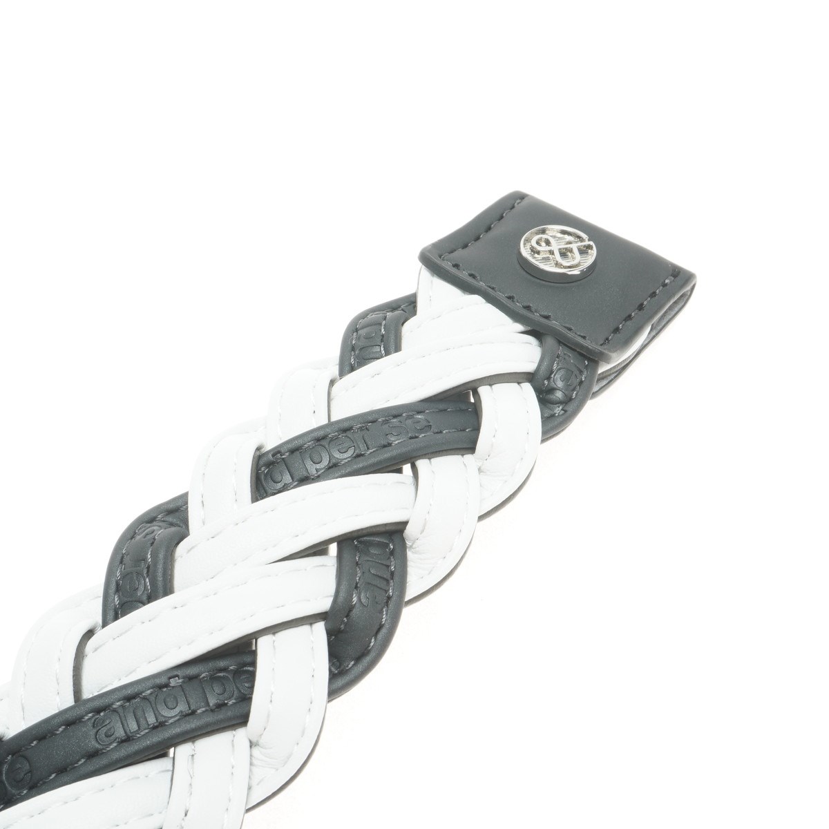 ホワイトパーツと、ロゴをエンボスしたパーツを編み込み上品に仕上げました。