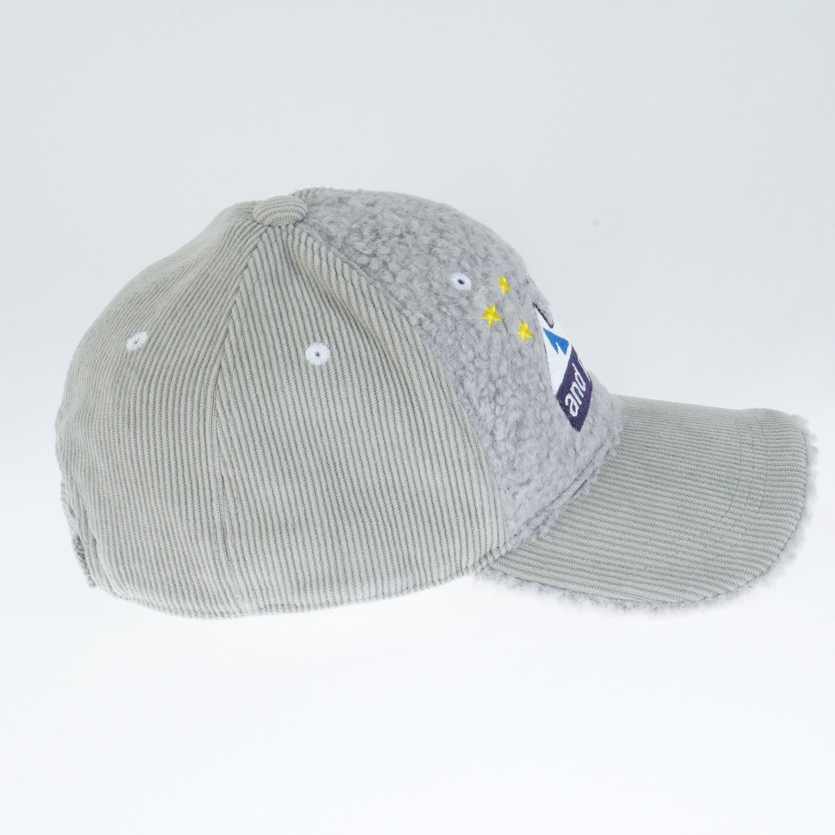 太畝のコーデュロイ素材とプードル調ボア素材を組み合わせ見た目にも温かみを感じられるデザインのキャップです。