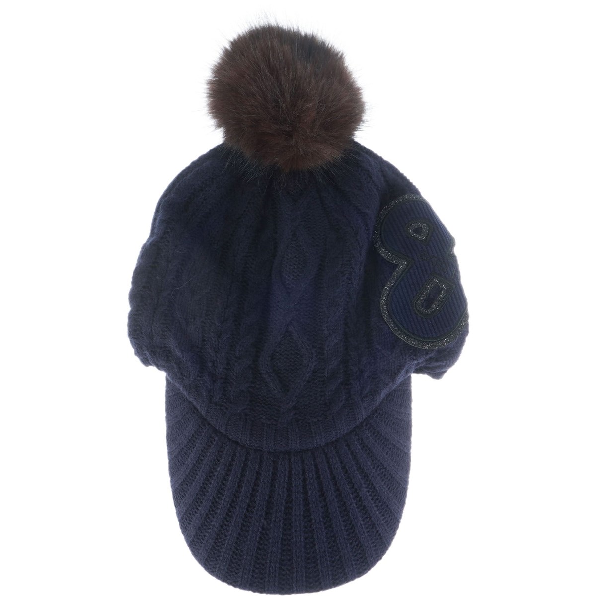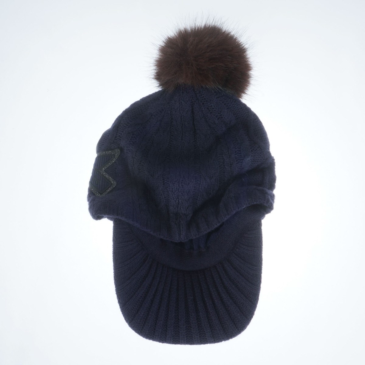 肌触りが良く、保温性の高いアクリル繊維のケーブル編みニットを使用した、つば付きニットキャップです。