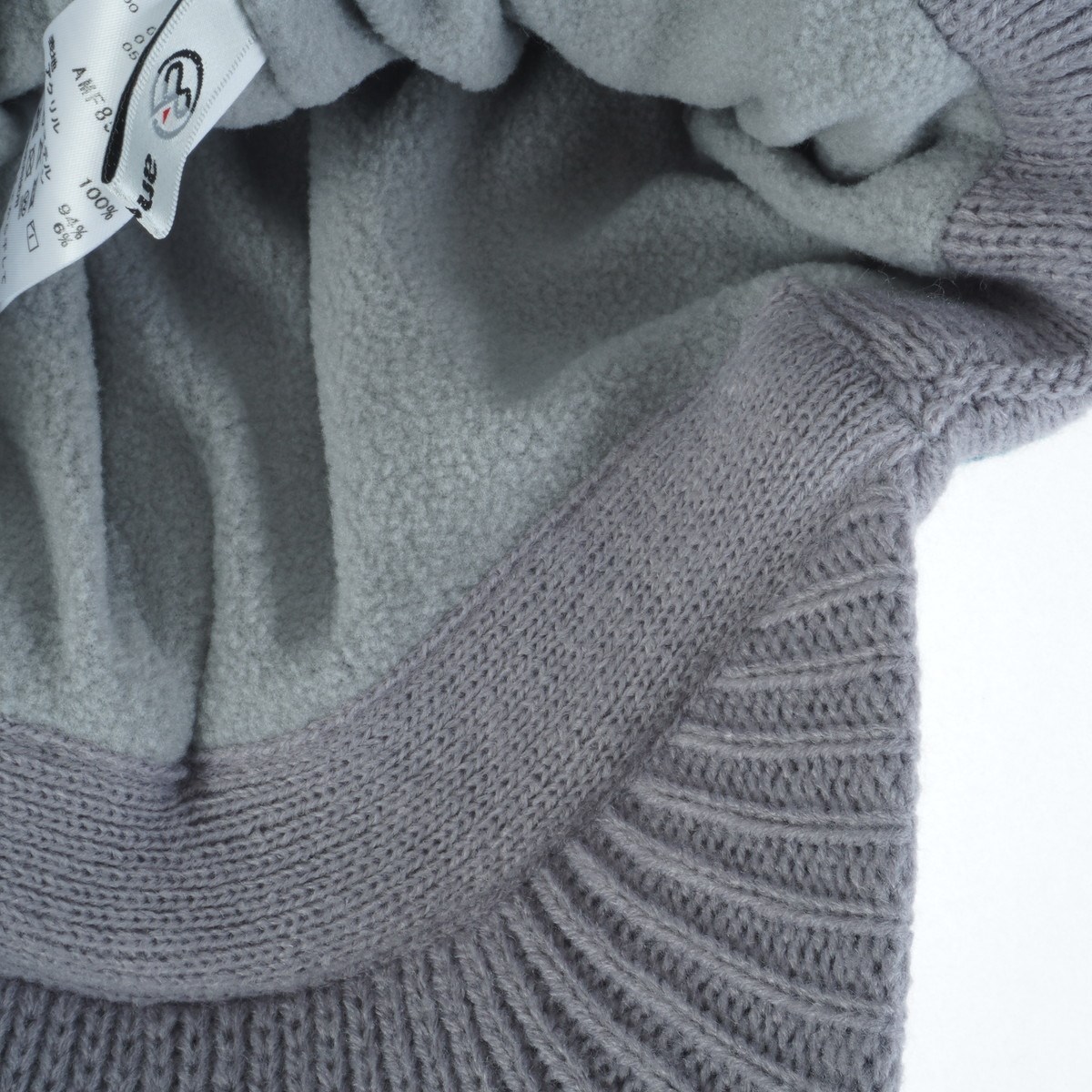 リブをずらすと耳回りと首回りを保温してくれるデザイン。