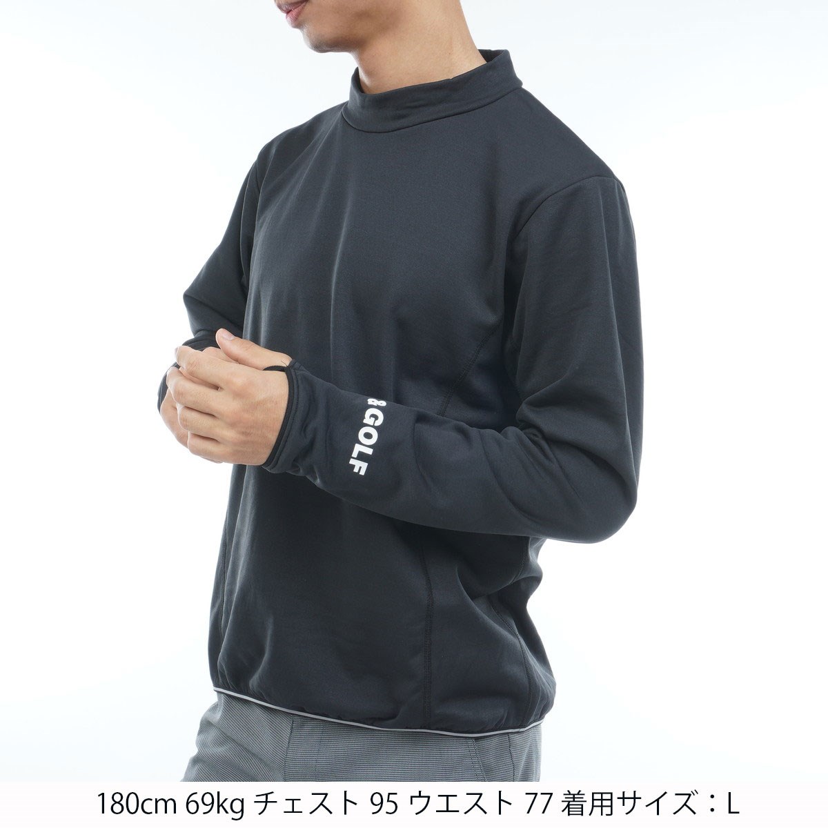 アンパスィ and per se & GOLF ストレッチ バックグリッドフリース 裏起毛 長袖モックネックシャツ L ブラック