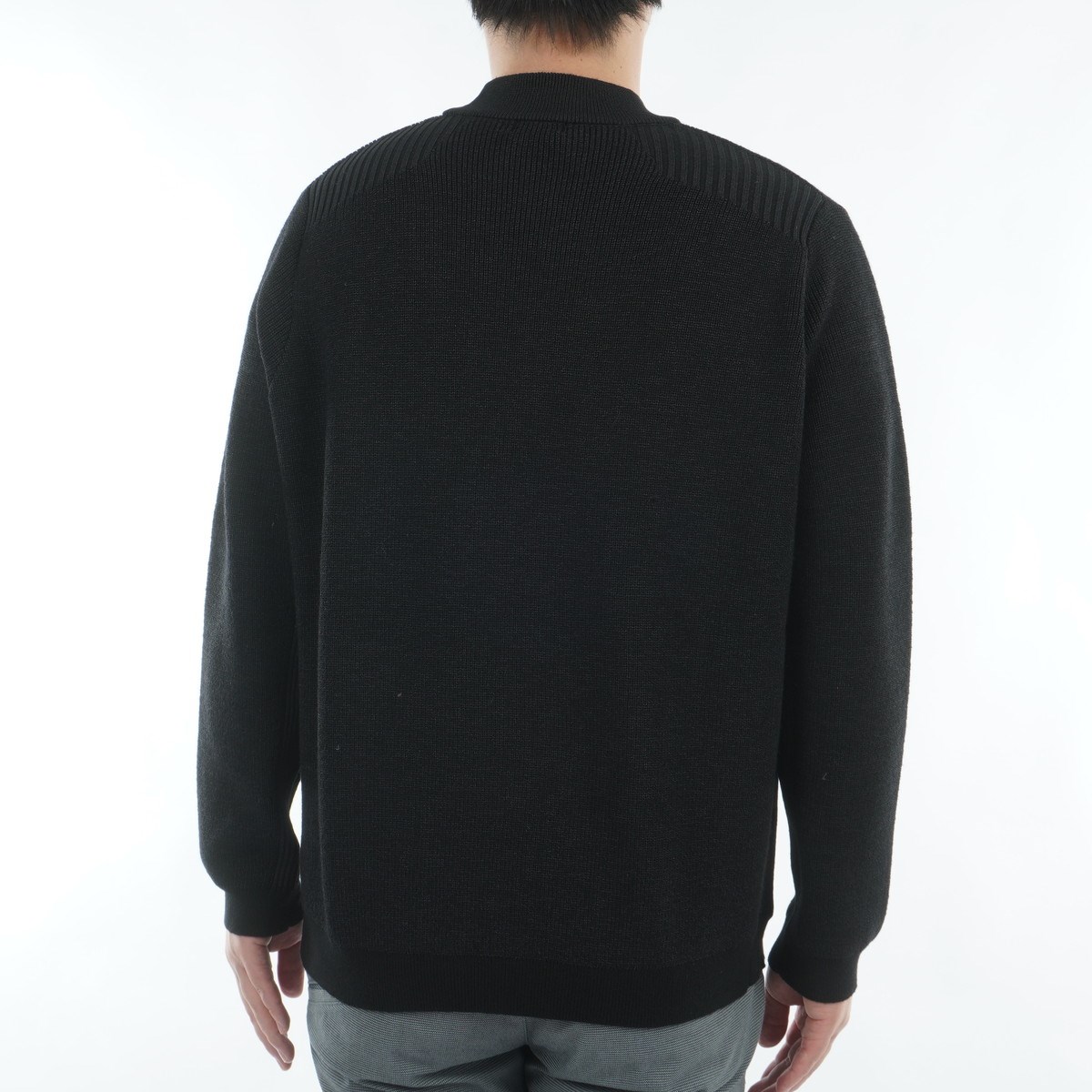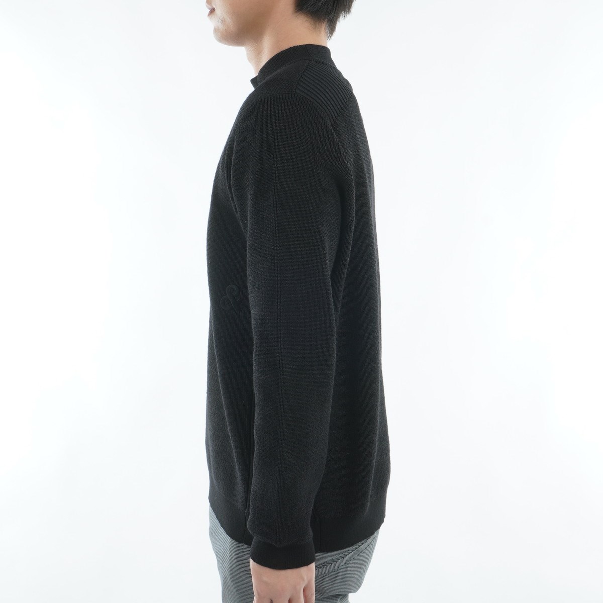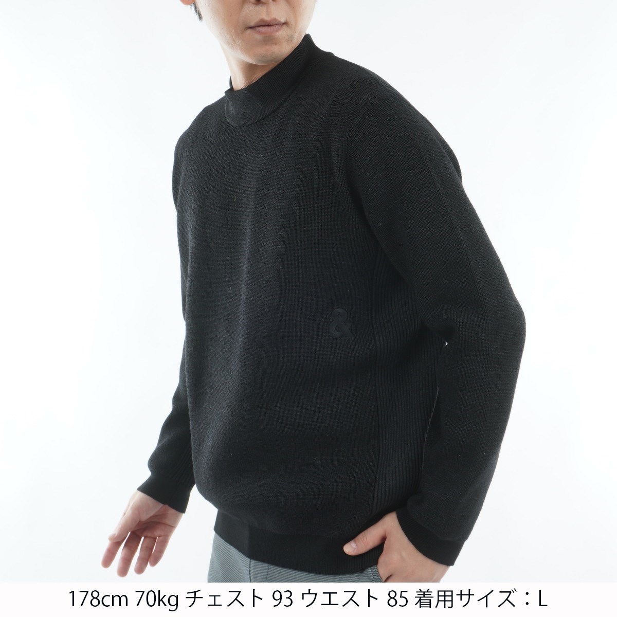 ずっとドライな着用感をキープしてくれる吸放湿性の高さが好評のペーパーファイバー糸と、膨らみ感の高いウール糸をミックスした独自開発ニット素材で仕上げたモックネックセーター。