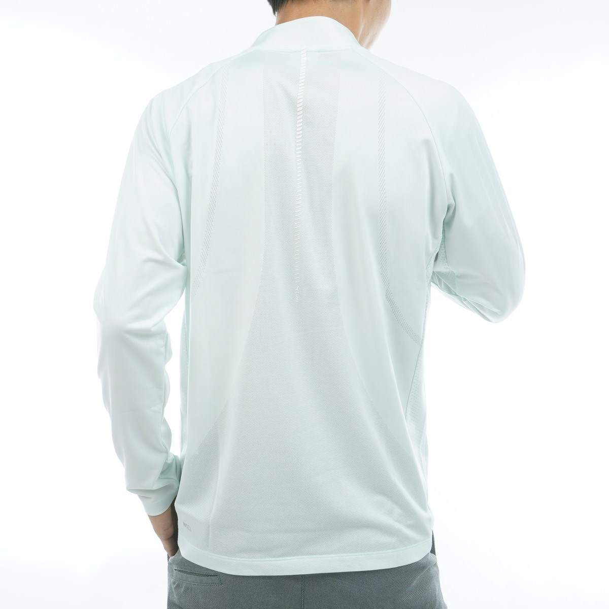 袖のT7ラインや背中の大きさの異なるジャカードメッシュで表現した軽量ハーフジップモックネック長袖シャツ。