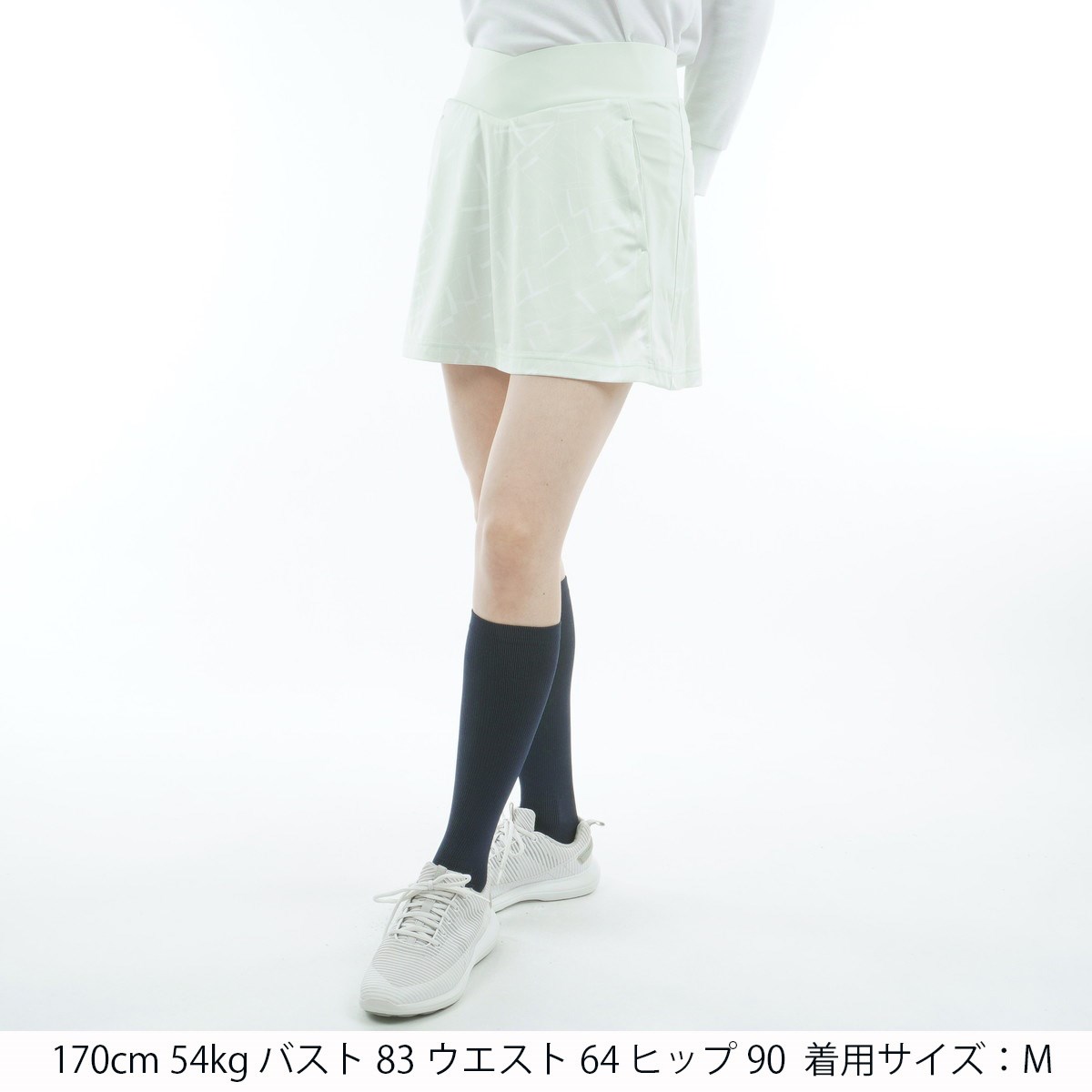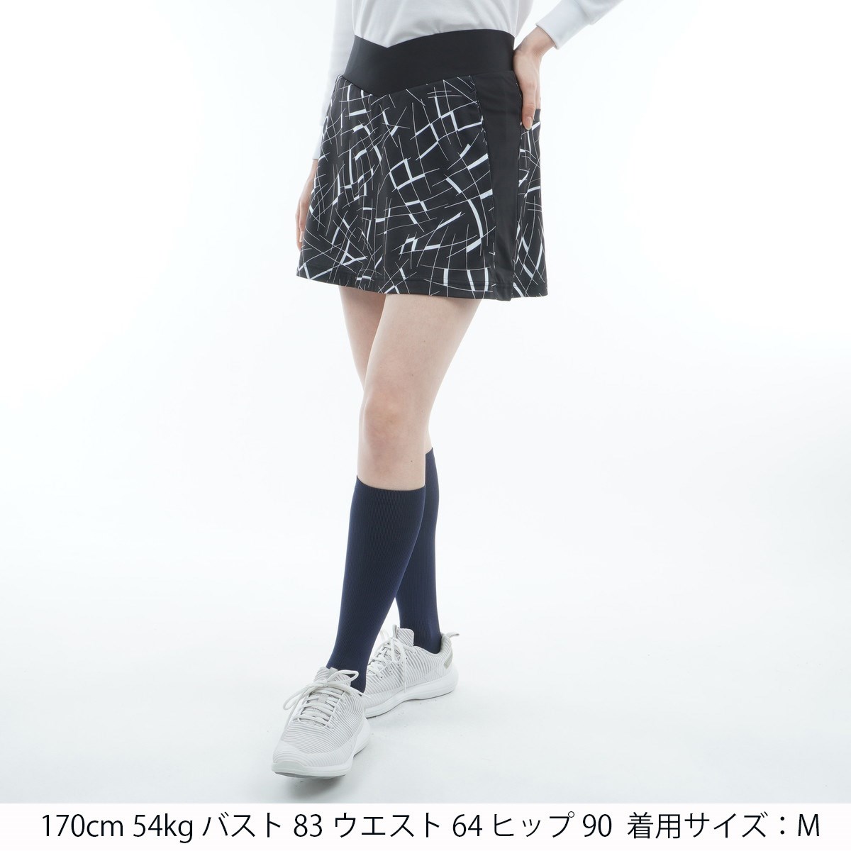 一体型インナーパンツ付きでスカートの回転を抑え、ウエストを丹田に誘導。