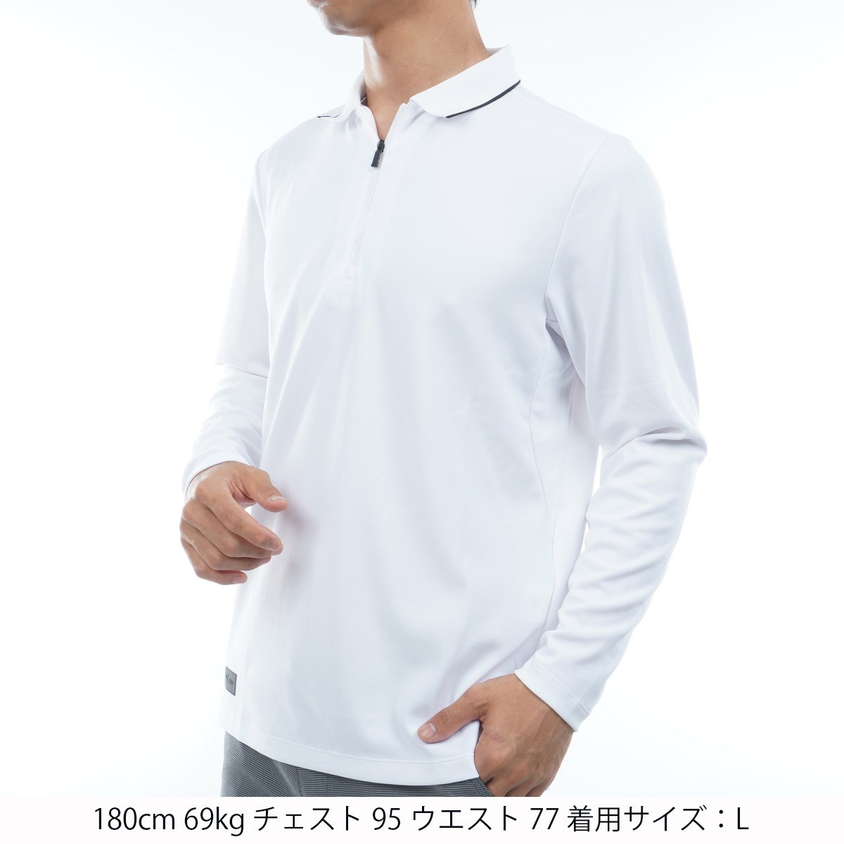 軽量のポロ衿を使用したハーフジップ長袖ポロシャツ。
