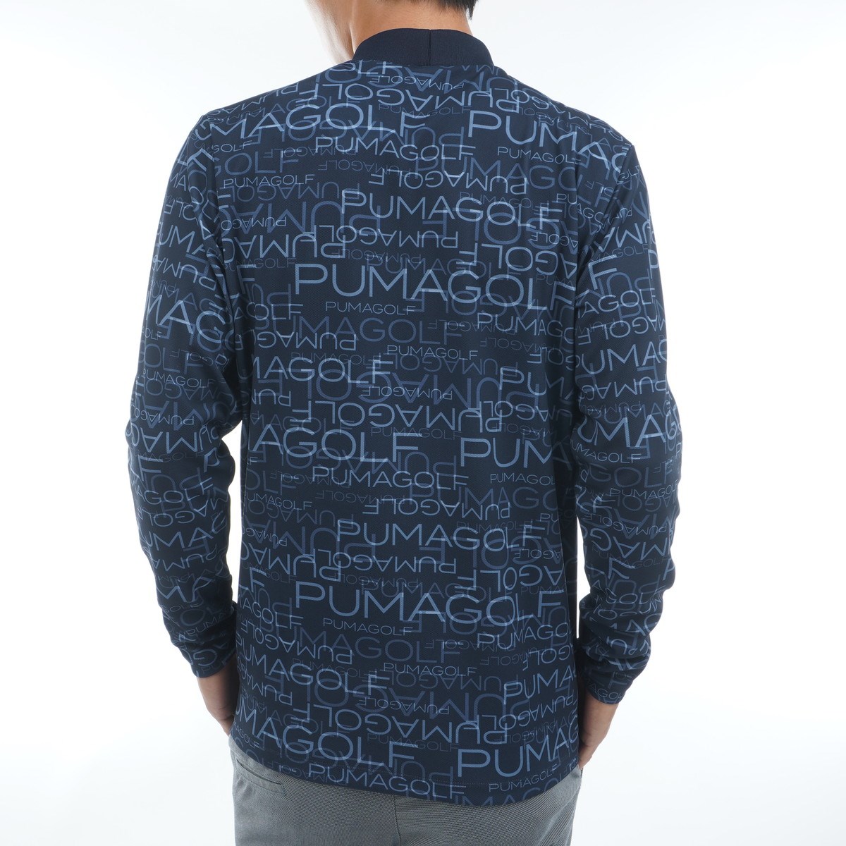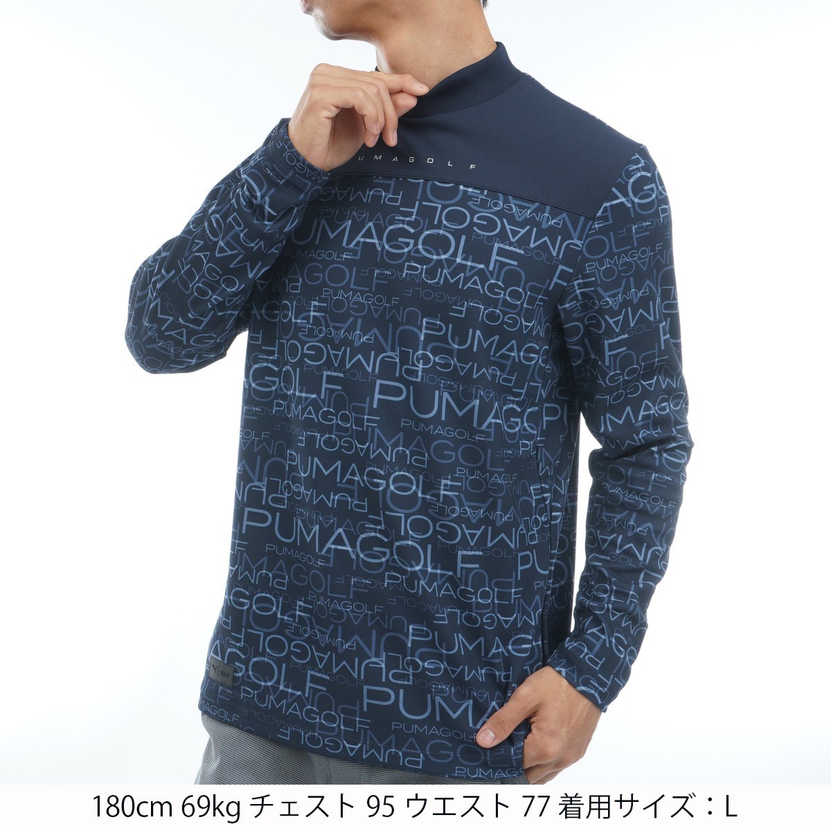 PUMA GOLFのロゴが全面に施されたリブ衿仕様のモックネック長袖シャツ。