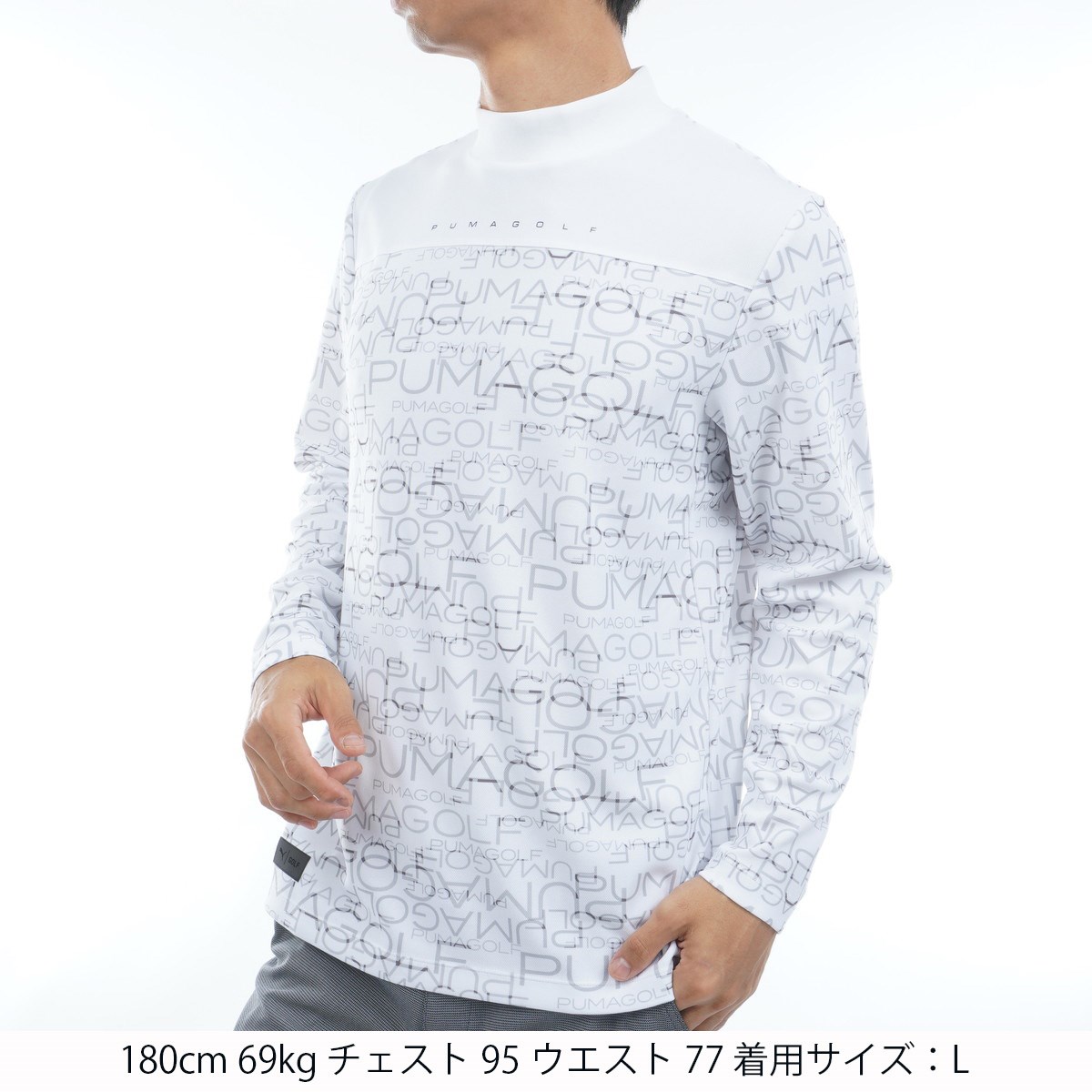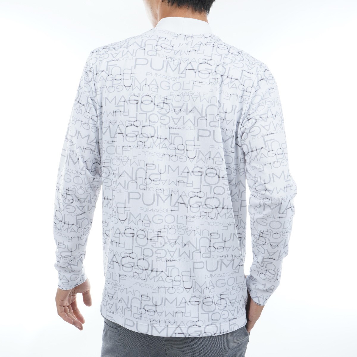 PUMA GOLFのロゴが全面に施されたリブ衿仕様のモックネック長袖シャツ。