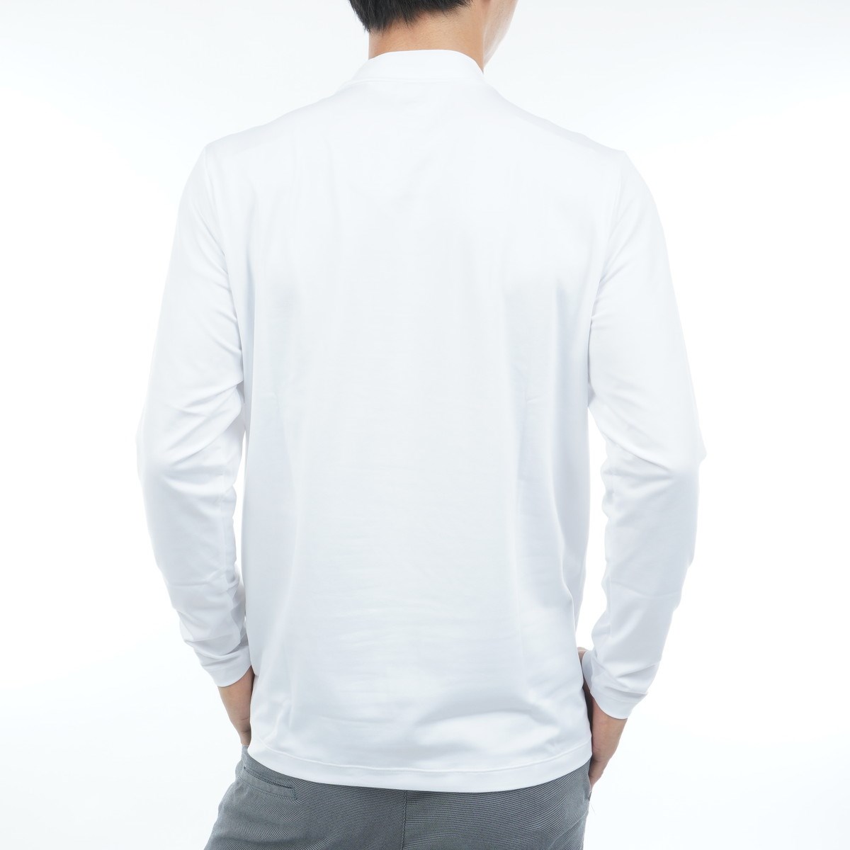 シンプルながら肩の圧着ラインがポイントになったハイネック長袖シャツ。