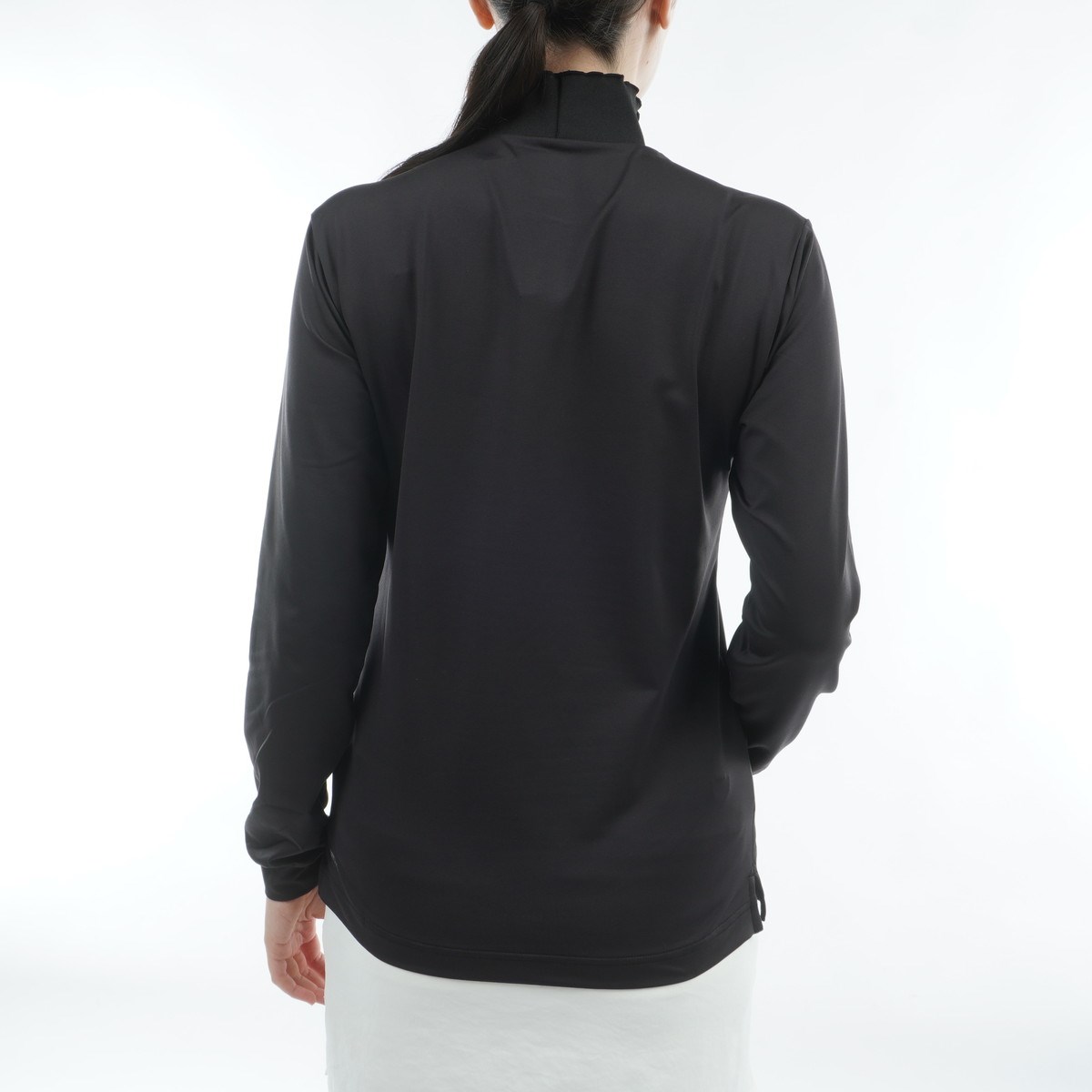 ピーチ起毛で肌触りのなめらかな生地を使用したベーシックハイネック長袖シャツ。