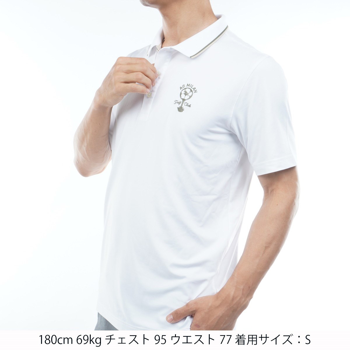 左胸にACミランとプーマゴルフのコラボレーションロゴを使用。