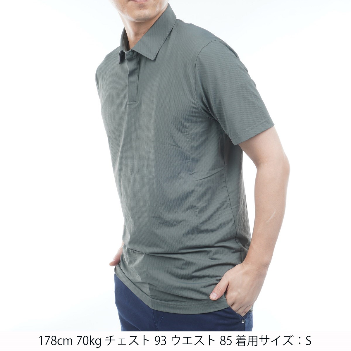 ひんやりとした肌触りのテクスチャードナイロン素材で、最高クラスの吸湿速乾性とストレッチ性能を備えています。