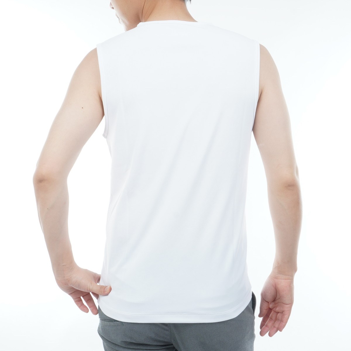 前肩にベンチレーションテープを施したシンプルなスリーブレスアンダーシャツ。