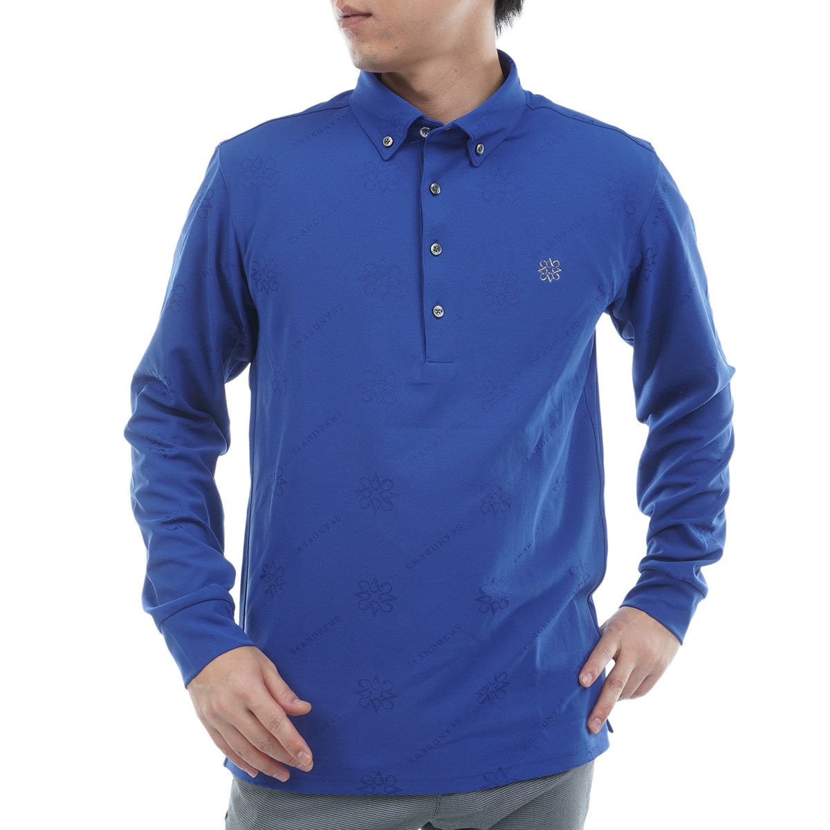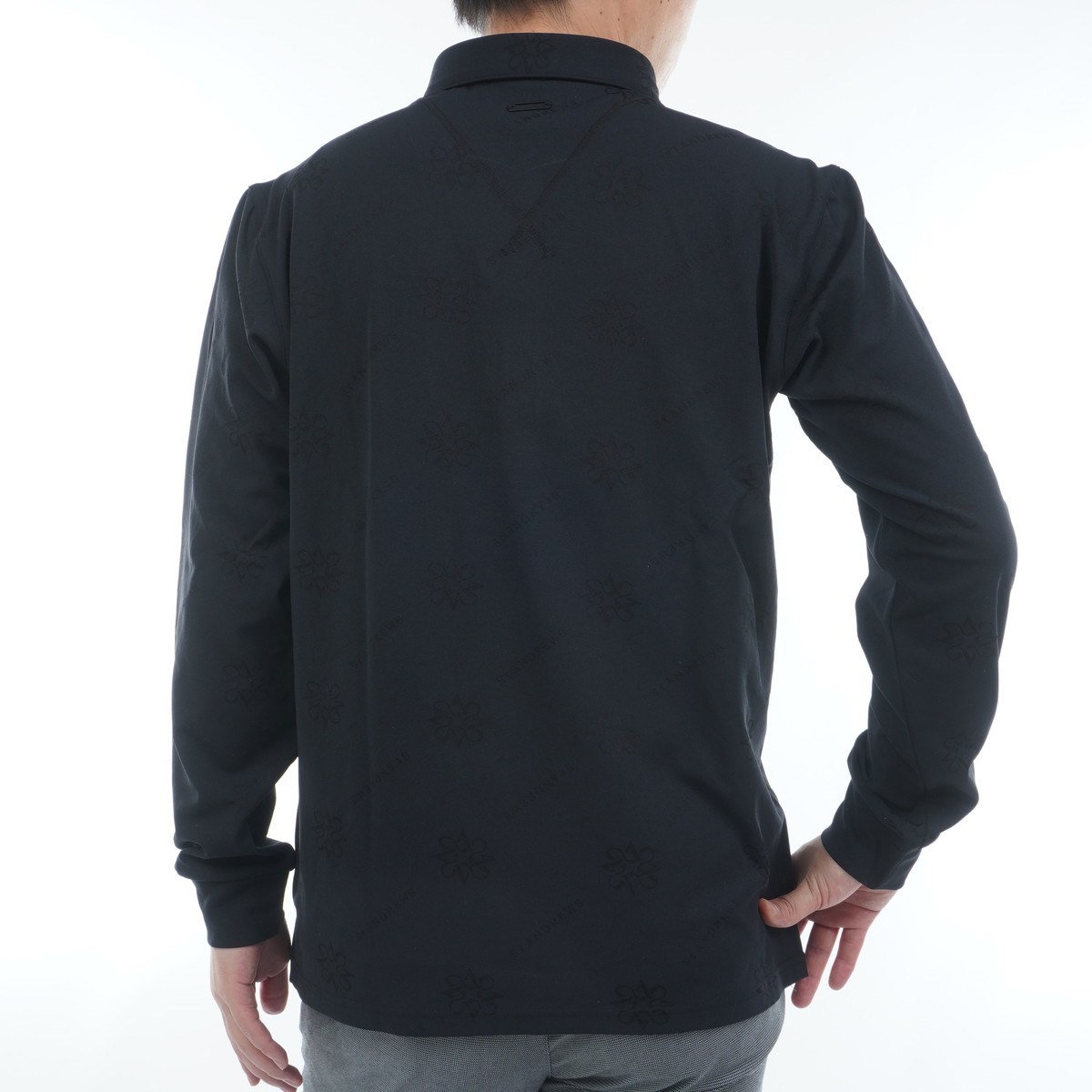 セント・アンドリュース St ANDREWS ロゴケルトジャカード長袖ポロシャツ M ブラック 010