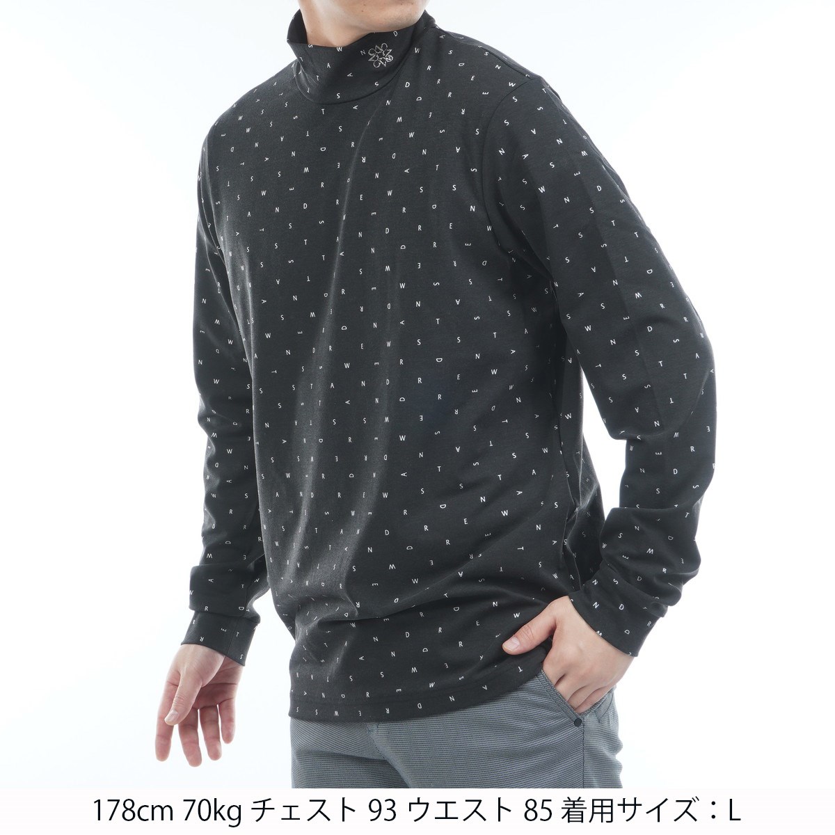 セント・アンドリュース St ANDREWS ソリストヒート ミニロゴプリント 長袖ハイネックシャツ M ブラック 010