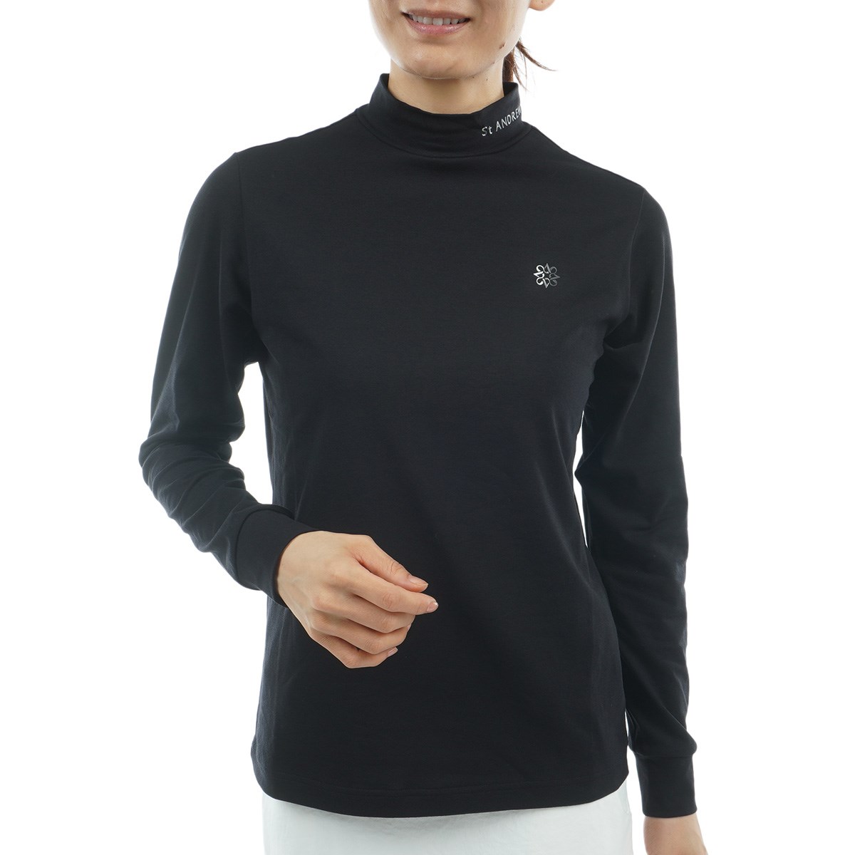 セント・アンドリュース St ANDREWS ストレッチ ベア天竺 長袖ハイネックシャツ M ブラック 010 レディス
