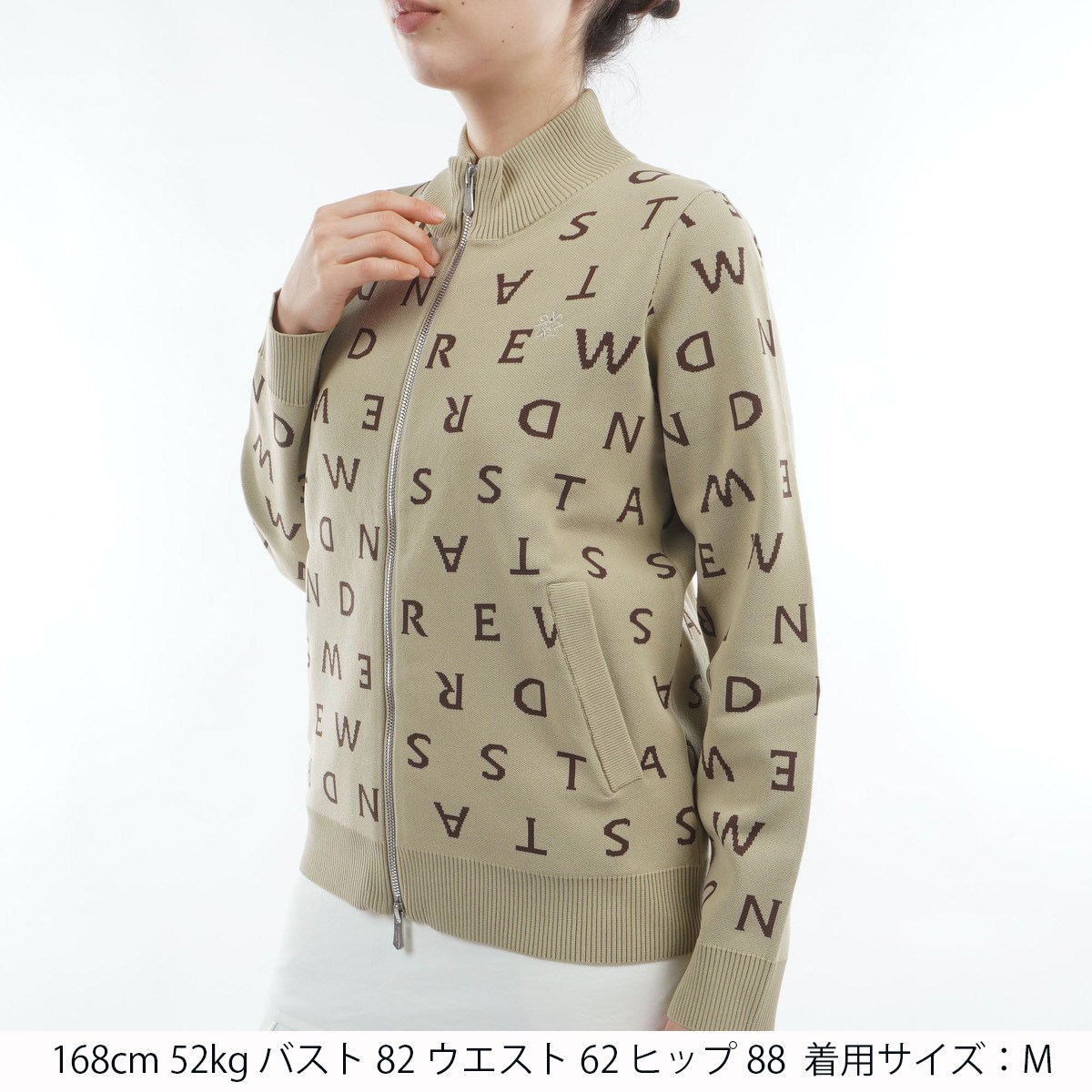 セント・アンドリュース St ANDREWS ロゴジャカードフルジップセーター S ベージュ 040 レディス
