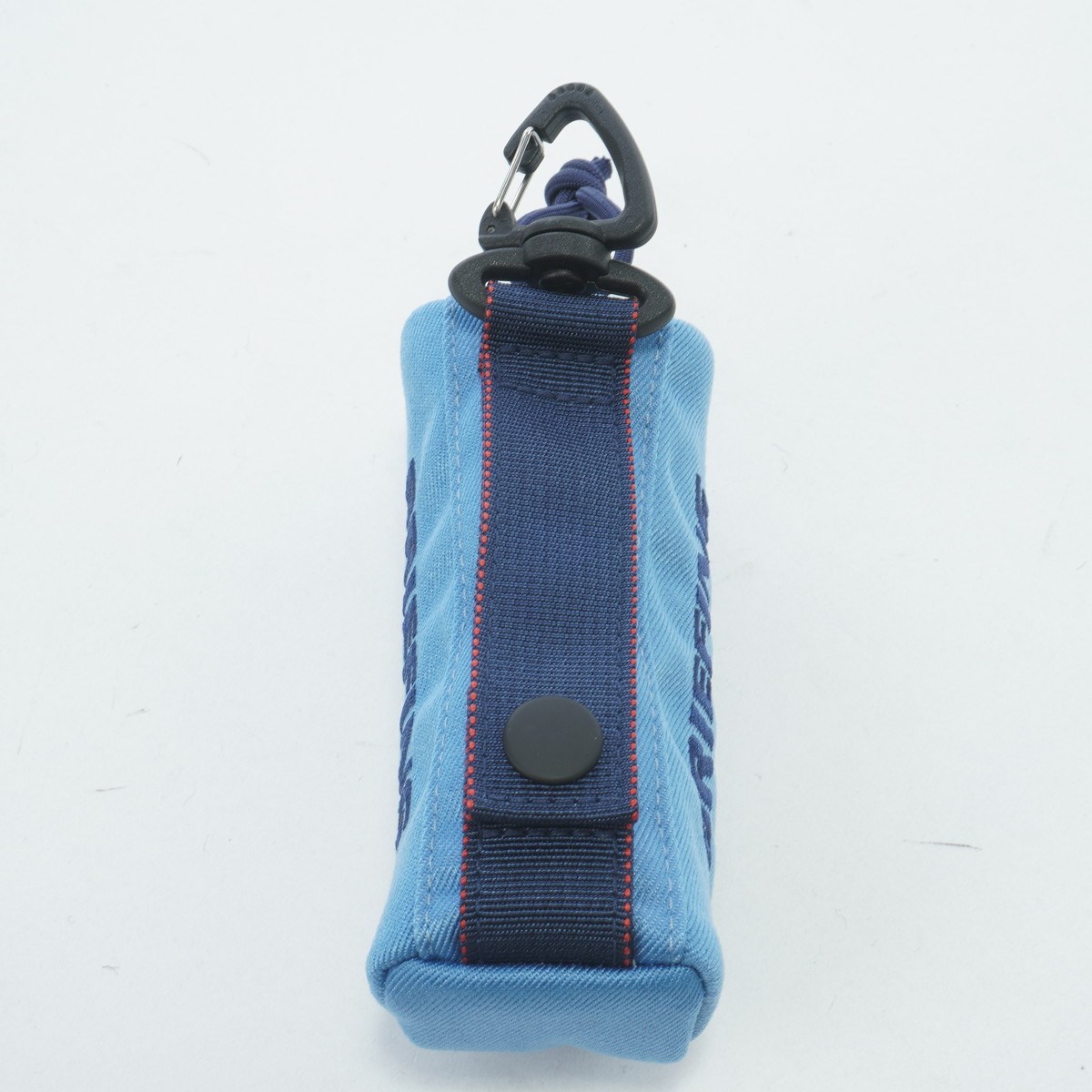 履き込んで色褪せたジーンズのようなブルー、グレーのデニム調生地を採用し夏らしい爽やかな雰囲気で仕上げたボールポーチ。