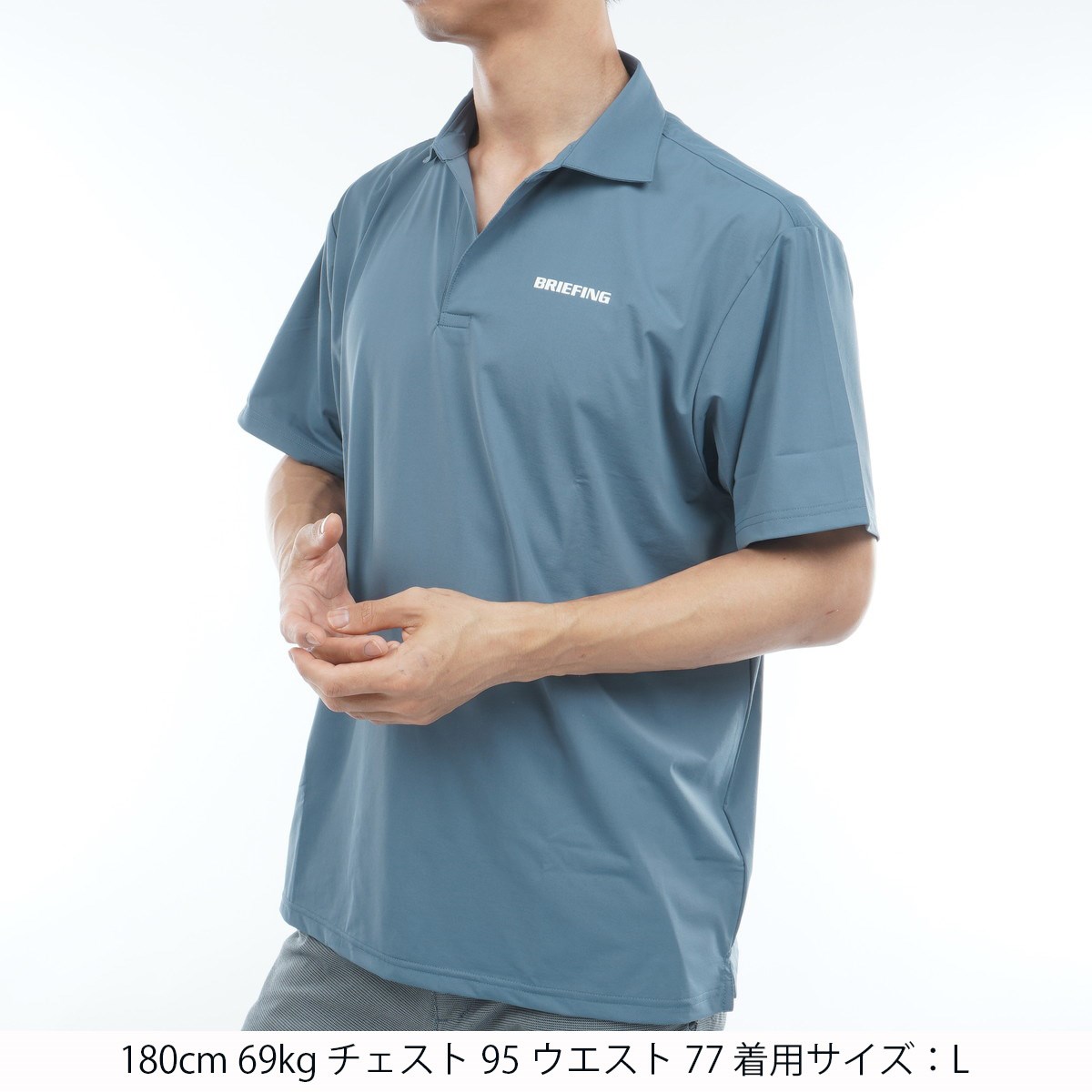 ブリーフィング BRIEFING ストレッチ スキッパー半袖シャツ M デニムブルー 073
