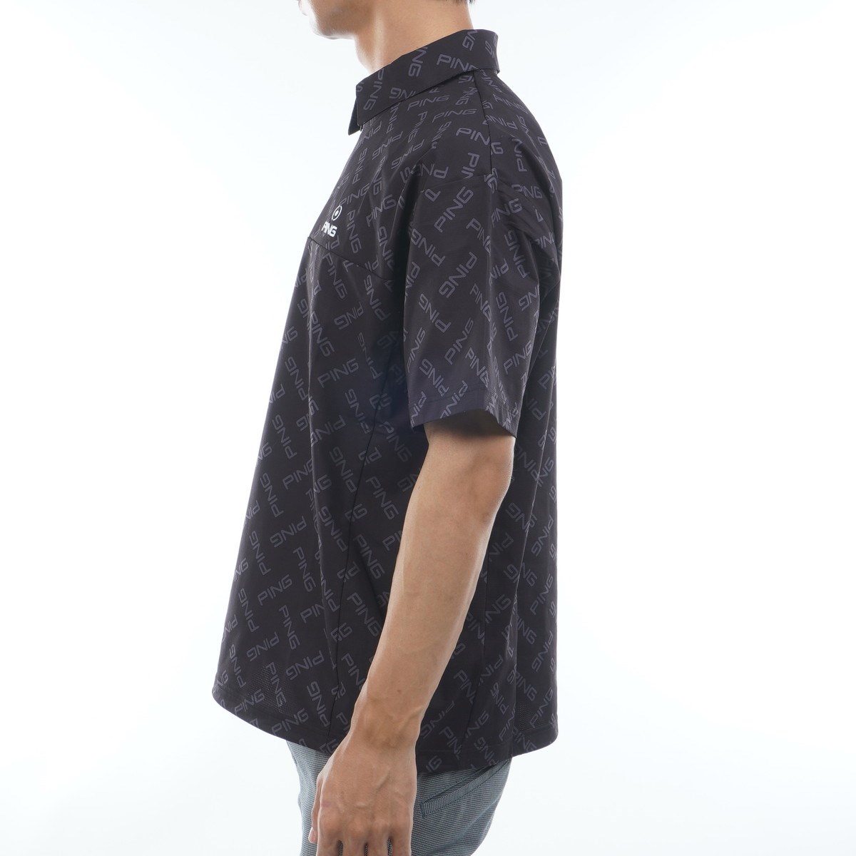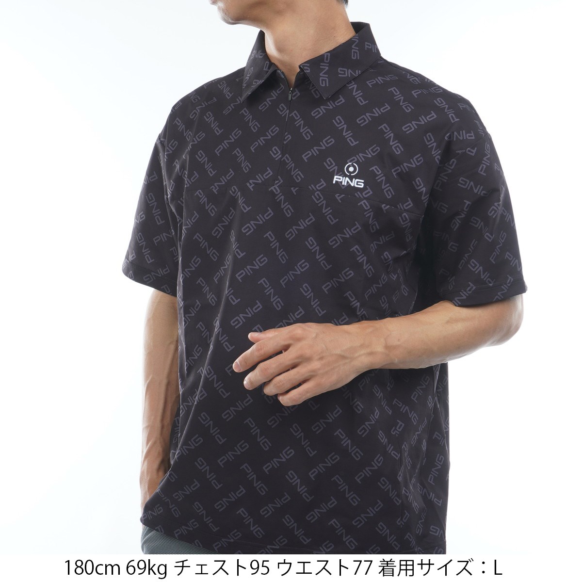 ピン PING ドットメッシュ ハーフジップ半袖ポロシャツ 3L ブラック 010