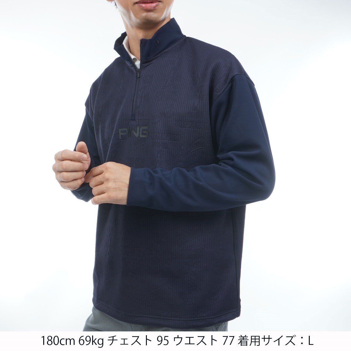 ピン PING キルトジャカード ハーフジッププルオーバー L ネイビー 120