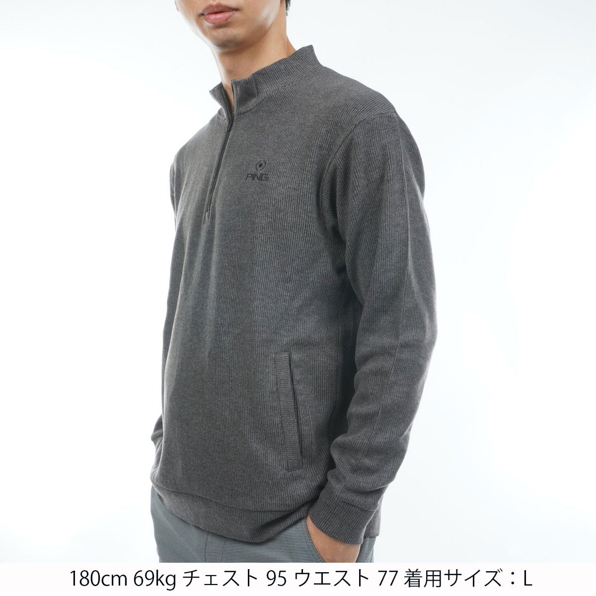 ピン PING 針抜きハーフジップ ハイネック長袖シャツ L グレー 020